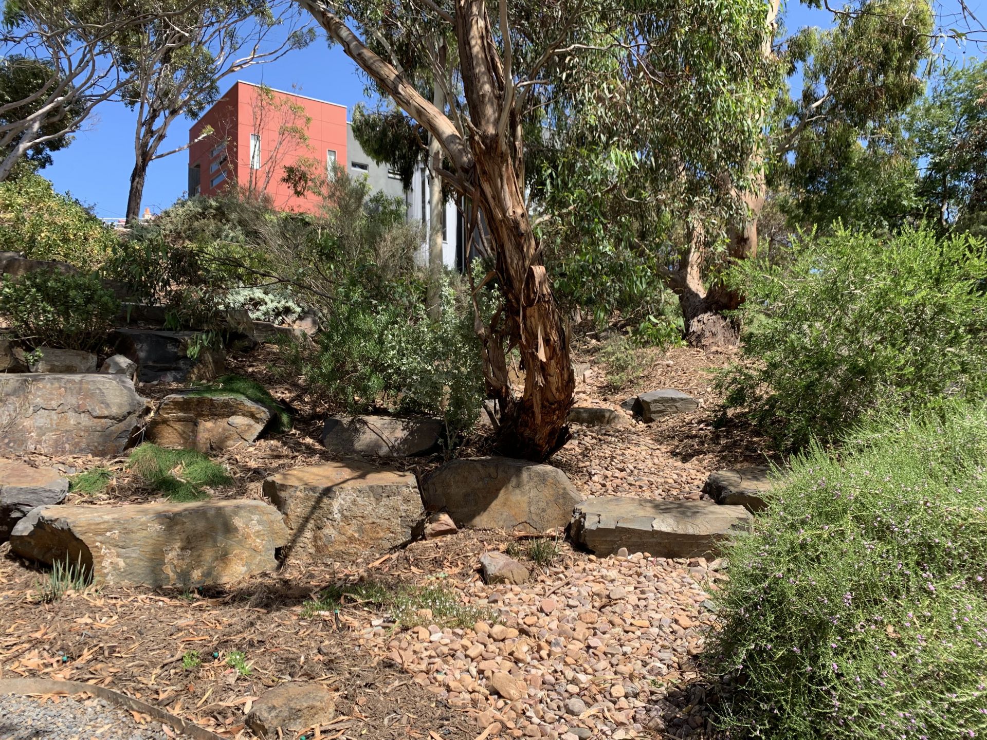 Koalas, yellow-tailed black cockatoos, lorikeets in the established trees and shrubs.