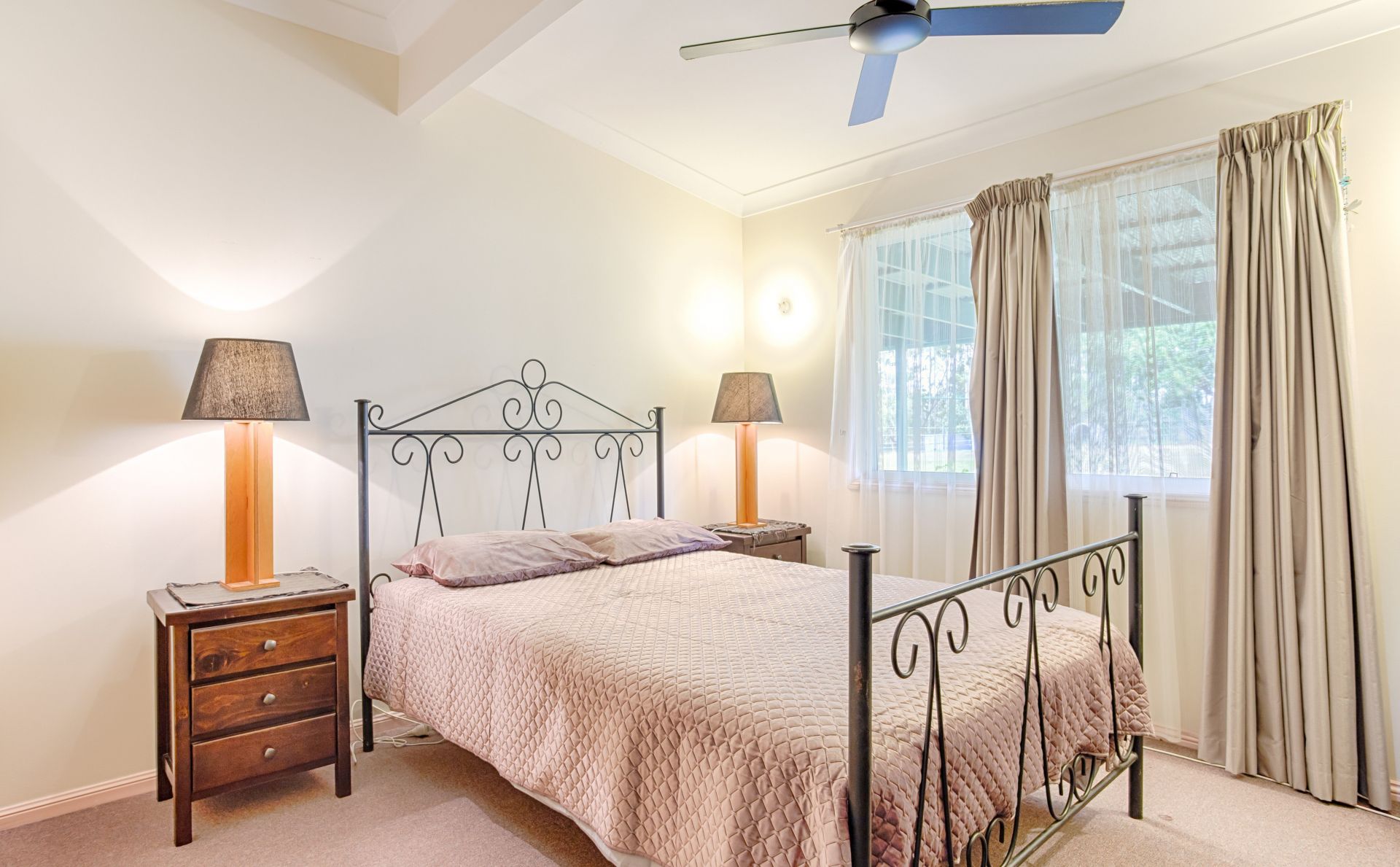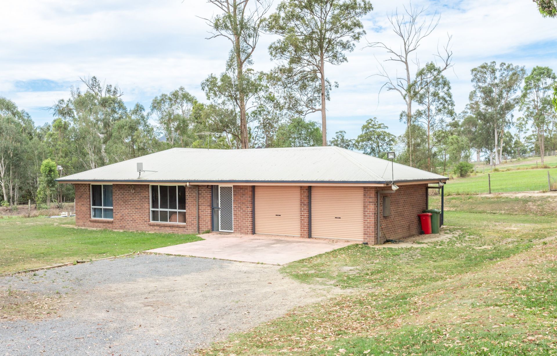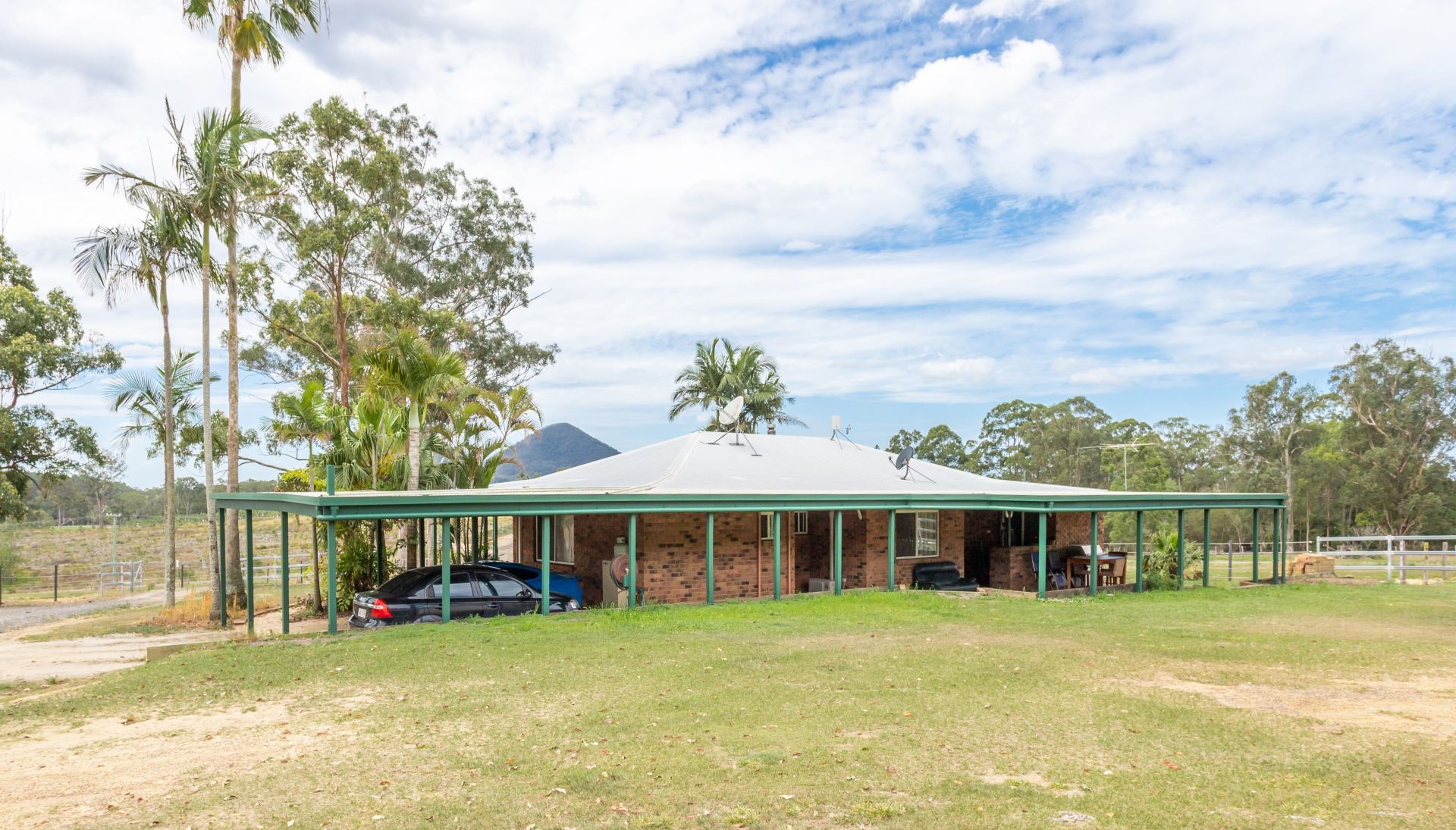 House 1: Colonial Style Grenadier Home, Brick veneer, reverse cycle air conditioning throughout, ceiling fans in all rooms, 4 bed 2 bath, 9' ceilings with federation style picture rail, wood heater, 3 carport, verandahs wrap around to huge rear patio with brick and granite bar, 350m2 under roof, easily keeps the 33,000 L rainwater tank brim-full. Huge garage and machinery shed 12m x 12m incorporating a huge workshop as well as a self-contained "Man Cave" or Teenager's Retreat with kitchenette, shower, toilet and laundry. Northern aspect set back 120m from road for commanding views west over D'aguilar Range and north over adjoining forestry and Glasshouse Mountains.