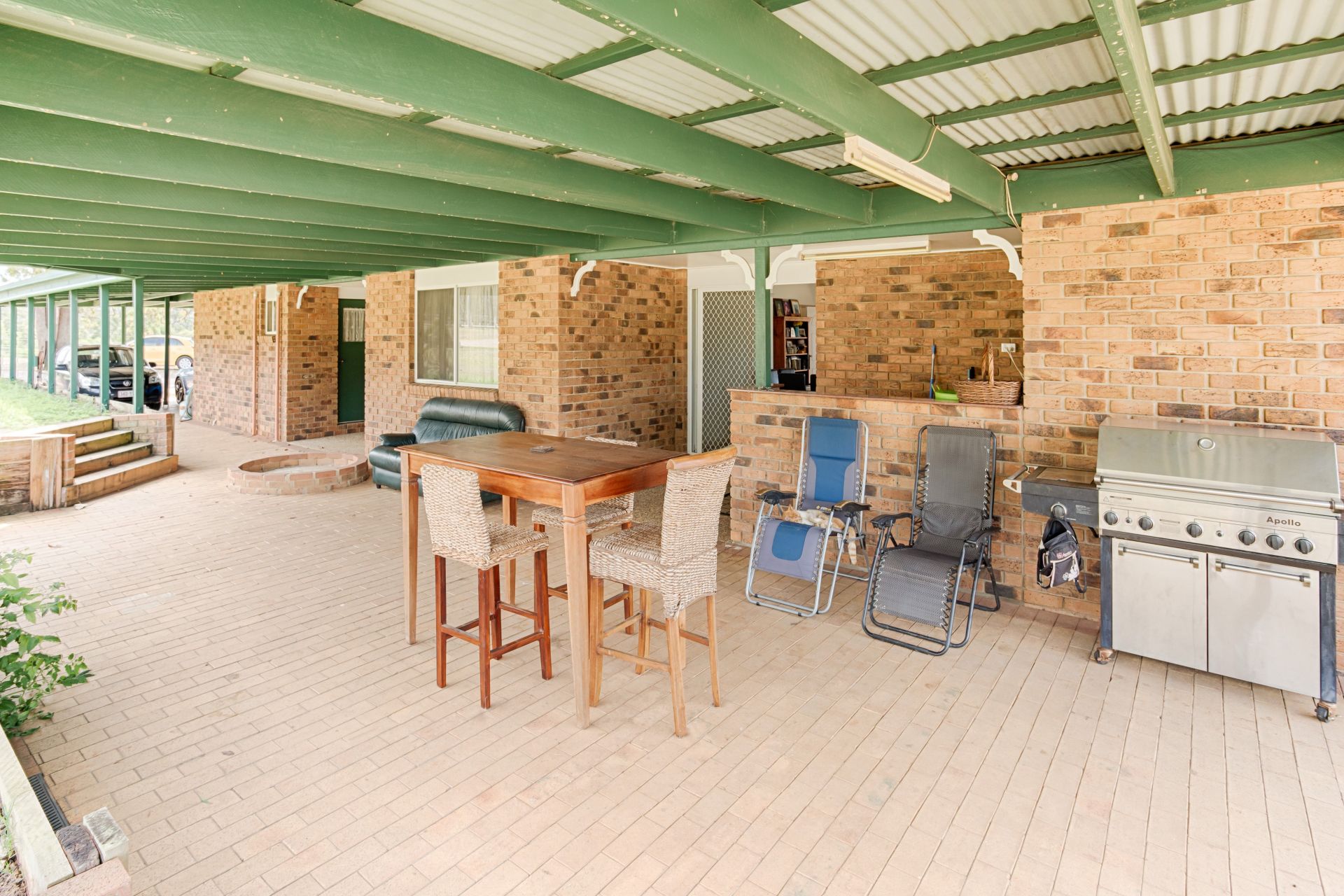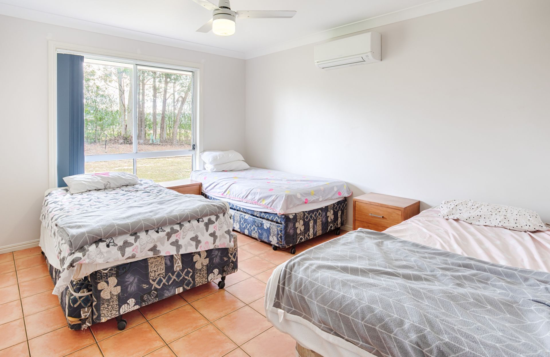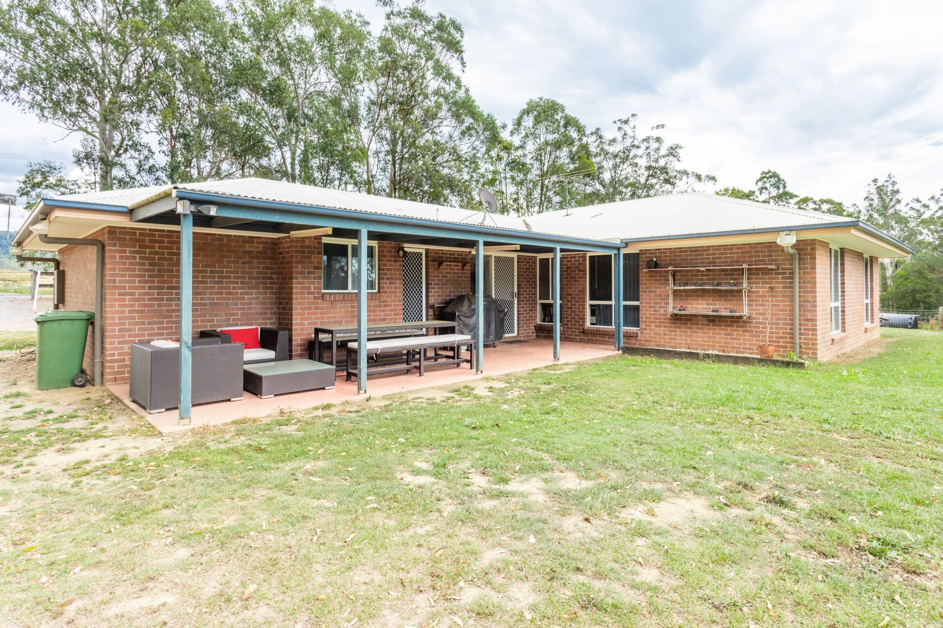 House 2: L-Shaped Brick veneer, 4 bed 2 bath, reverse cycle air conditioning, ceiling fans throughout, double garage, rear covered patio, large family home serviced by 44,000 L rainwater tanks, leafy shaded yard with dog-proof fence, chook pen and 2 adjoining horse paddocks 4 acres for use by past-tenants.