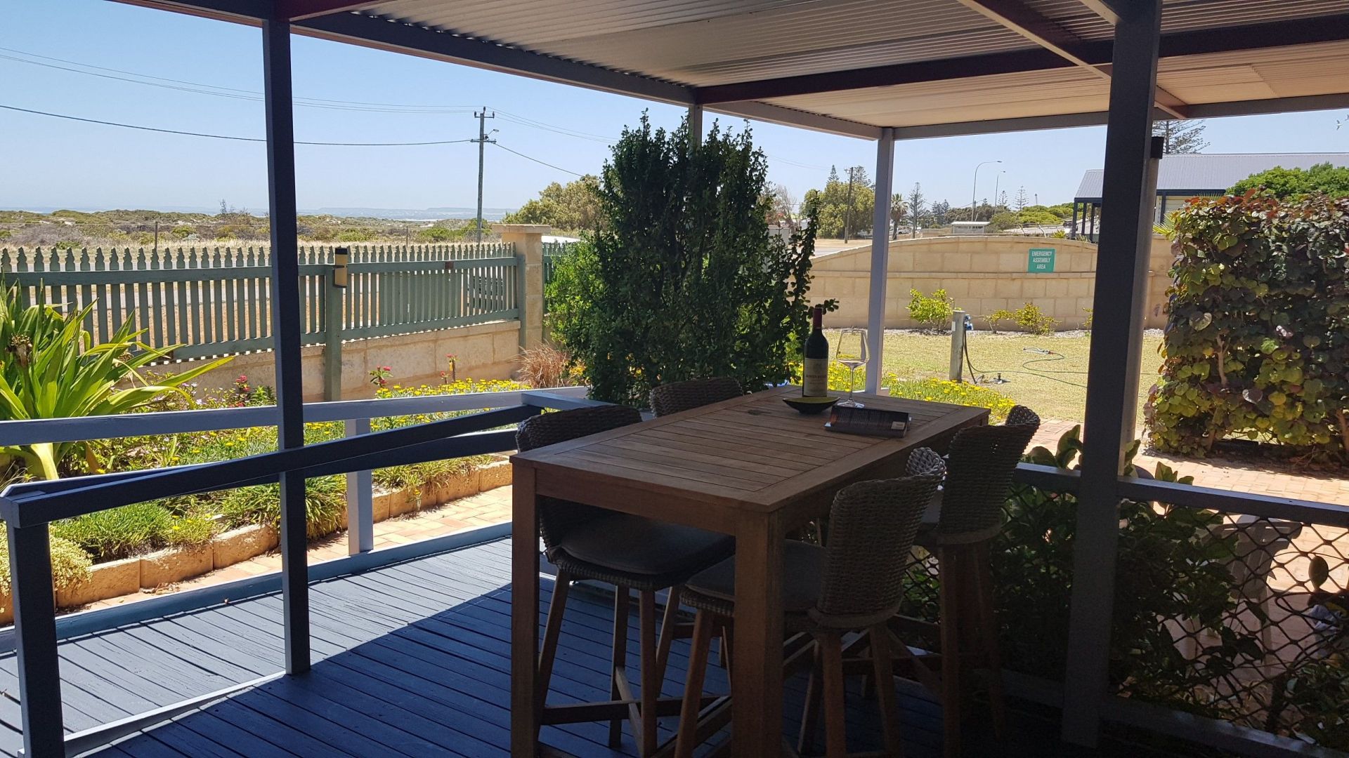 Spacious back deck with easy access ramp and fabulous ocean outlook where you can "watch ships come and go"