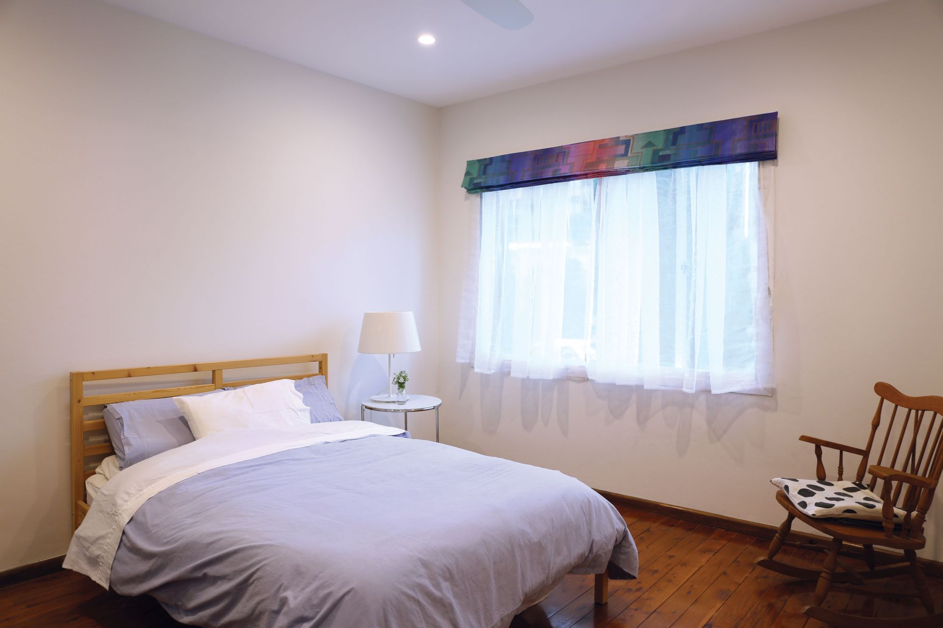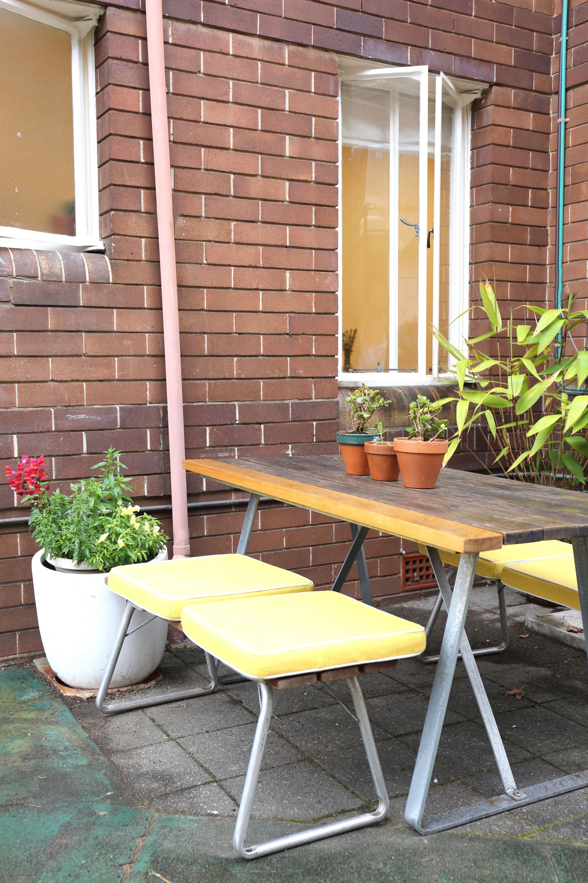 Polished wooden floorboards, high ceilings in a block of four units. Situated on a tree-lined street with street parking available.