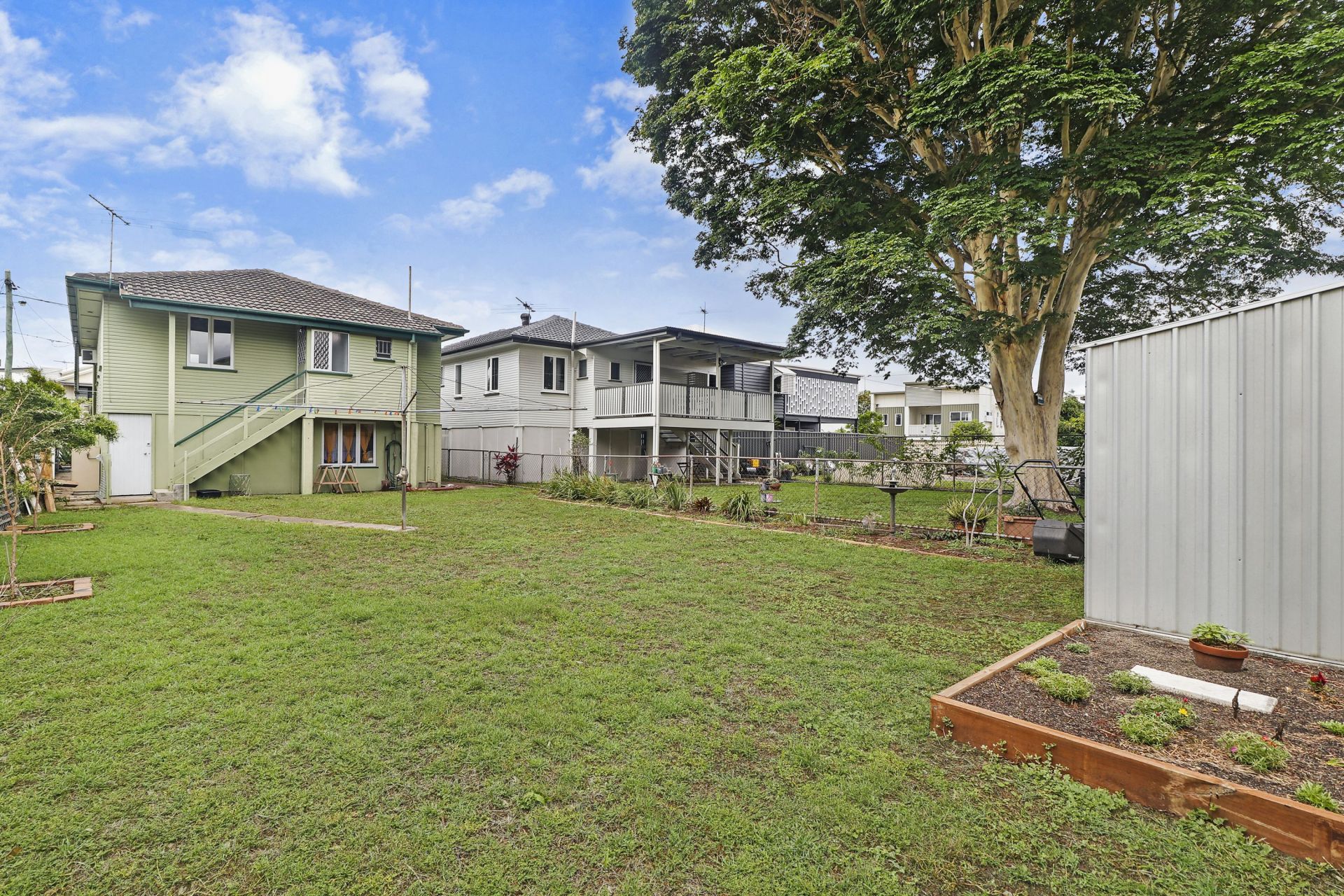 - Fully fenced backyard with storage shed and veggie patch
