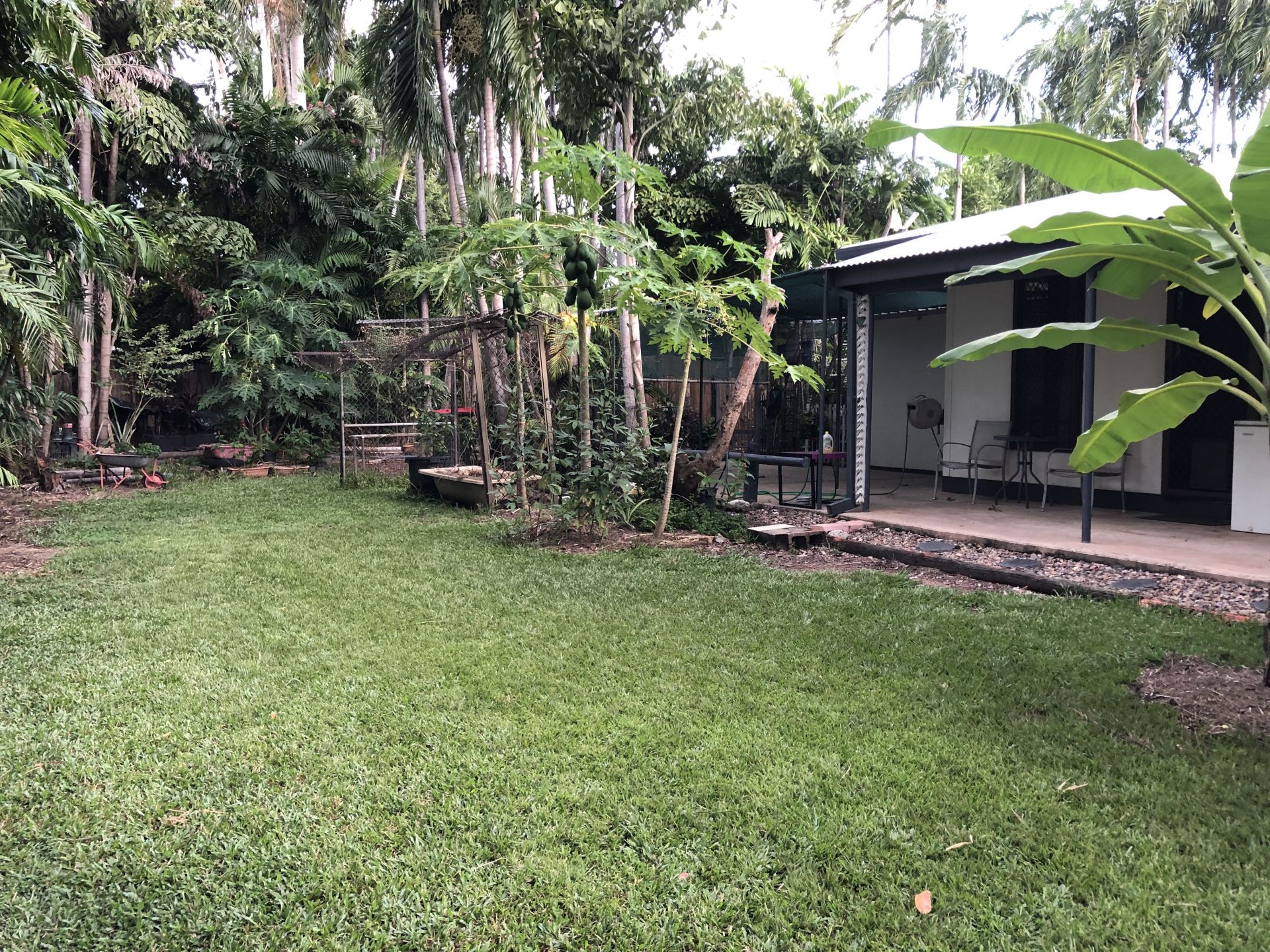 Walk to beach through Casuarina Coastal Reserve. Raised vege patch, papaya, banana, dragon fruit, mulberry, pineapple, water spinach, sweet leaf, lemon grass, rosella, grafted mango and mandarine tree.