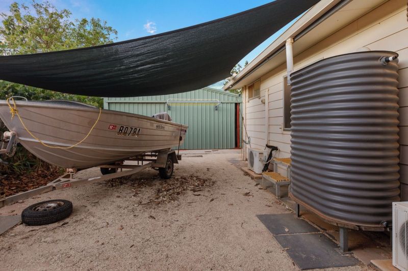 Surrounded by a fully fenced established garden with reticulation, there is ample driveway space for your caravan and boats. A large shed which has more than enough room for all the outdoor and fishing gear, allowing you to take full advantage of the unbeatable 'Exmouth lifestyle'.