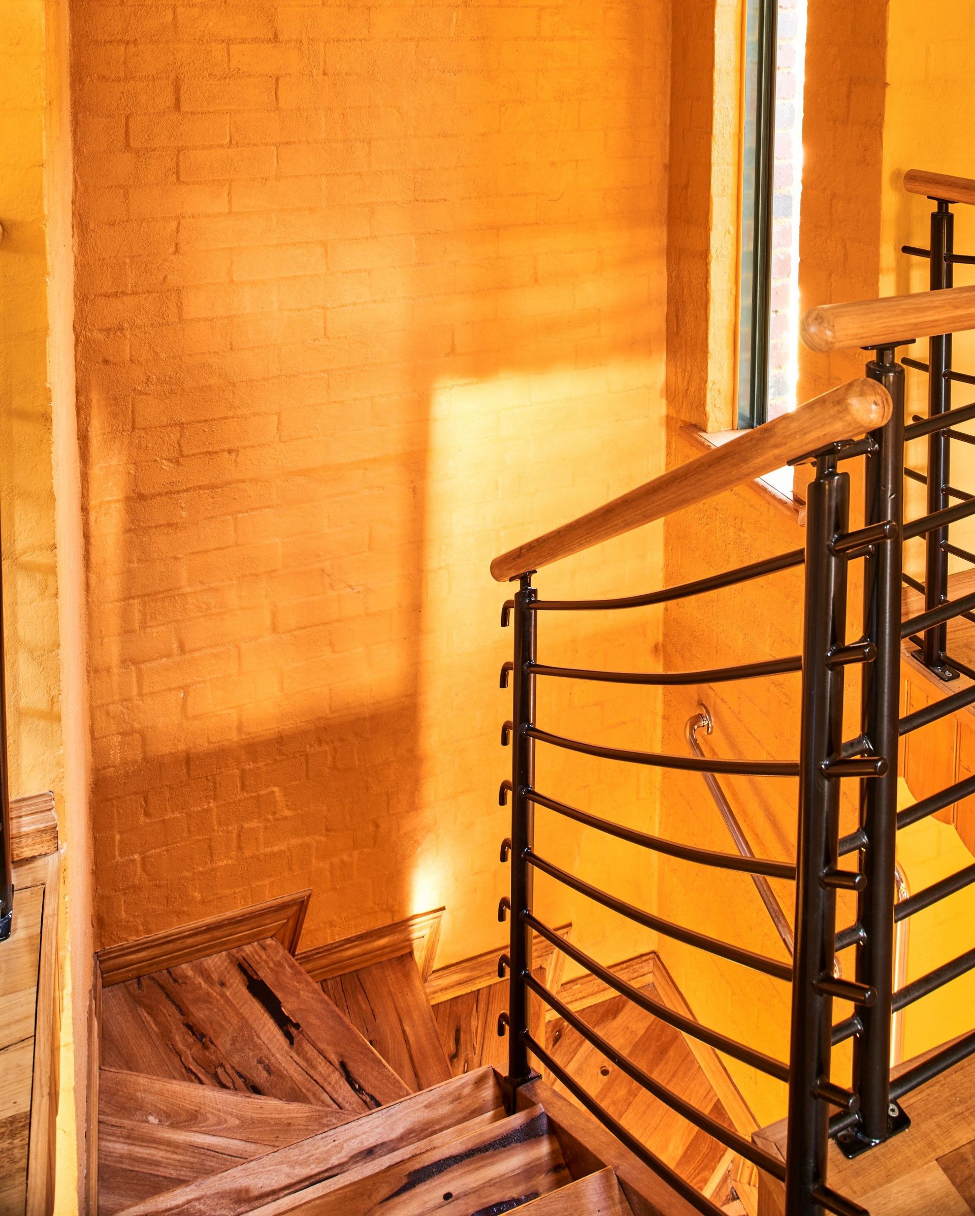 The custom made staircase leads you to a mezzanine and into the large main bedroom with its unique built out cupboard. French doors open onto a private balcony with access to the wc.