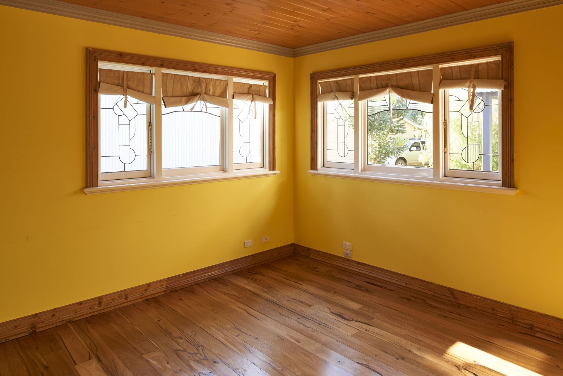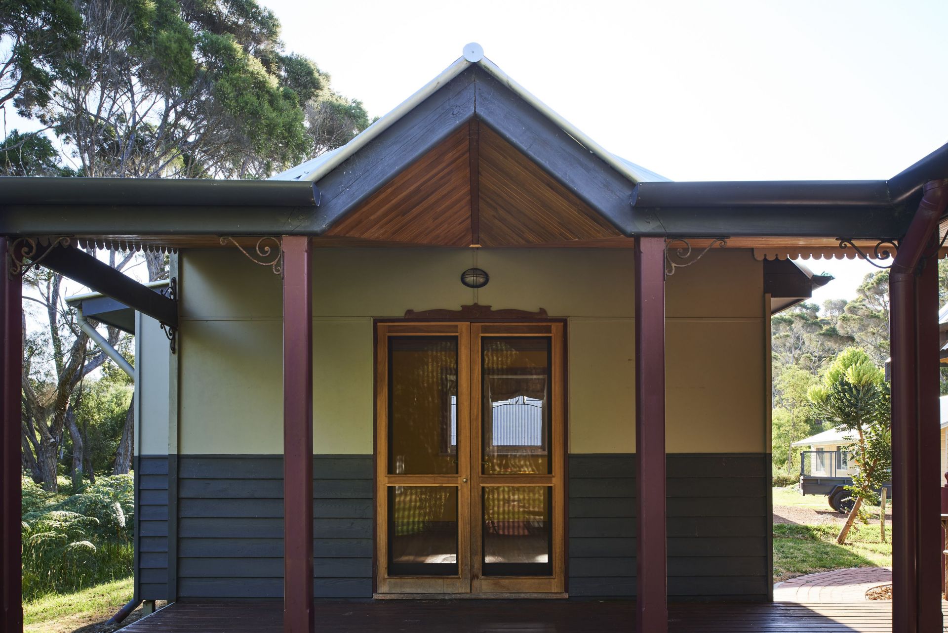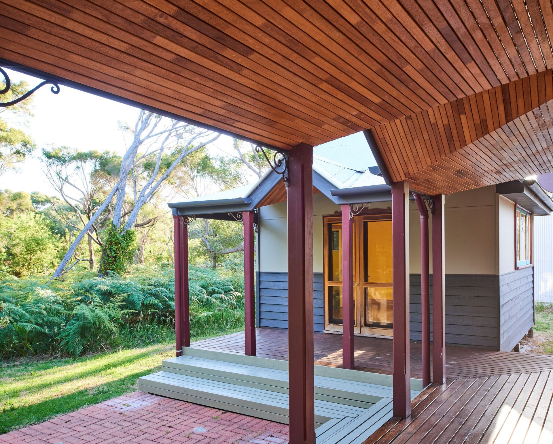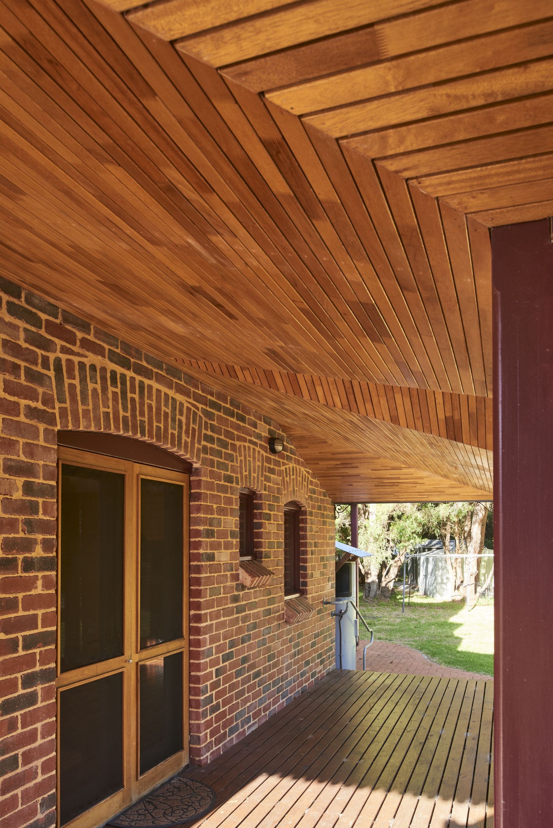 The timber slat verandah ceiling is a testament to the skill and patience of the builder.