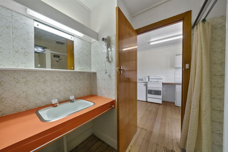 The recently re-decorated apartment (manager's unit in the plan) has tas-oak floors, hydronic heating, a kitchenette and bathroom, and overlooks picturesque Parsons's bay.