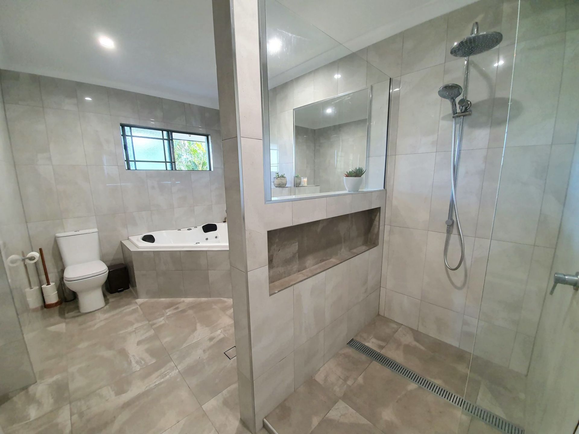 - Three bedrooms feature ensuited bathrooms (one connecting to the main bathroom).