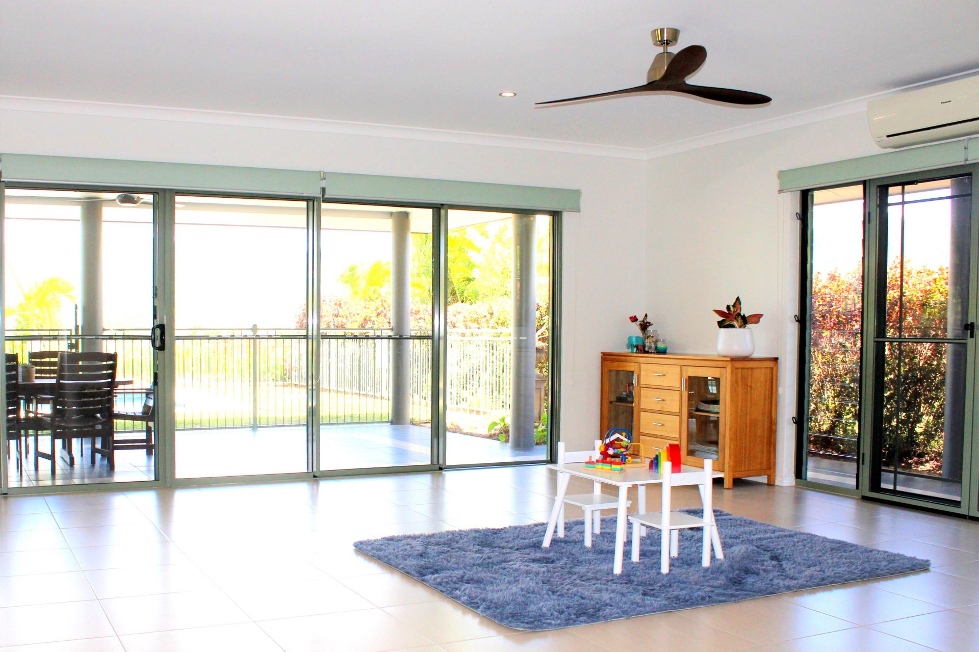 - All rooms feature blinds and large, glass screened doors, which provide access to the wrap around patio.