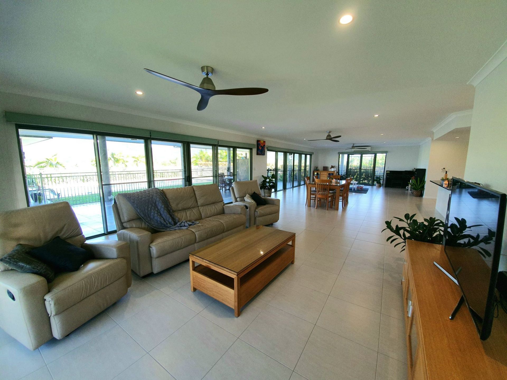 - Open plan living throughout, featuring 338m2 of interior living and 179m2 of wrap around patio, creating a total under roof area of 517m2.