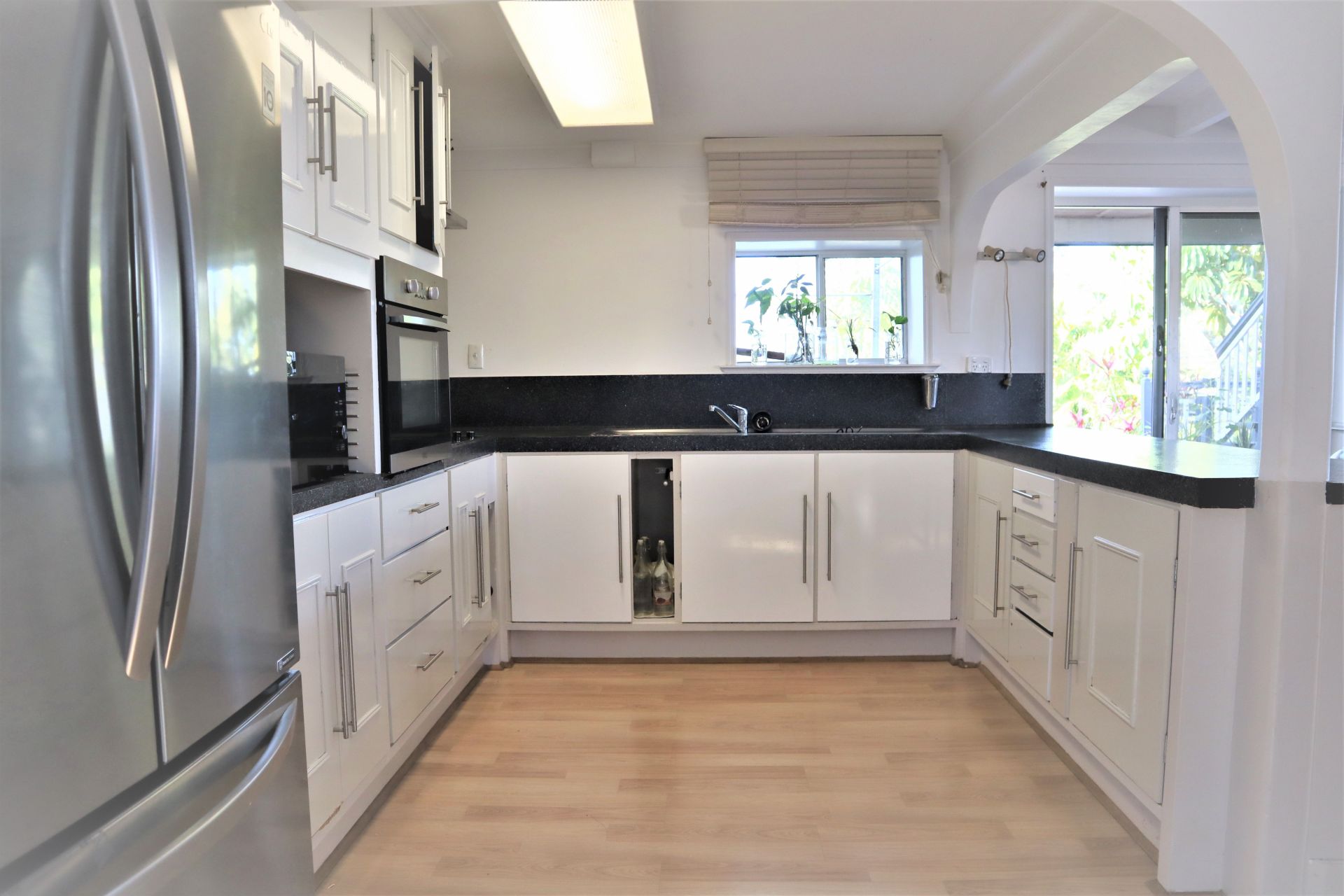 - Open kitchen with 2pack coated cupboards and doors throughout