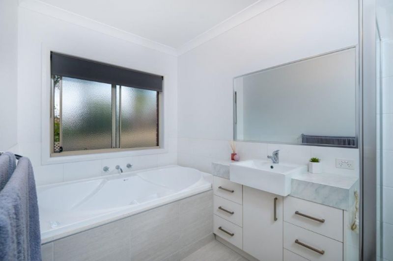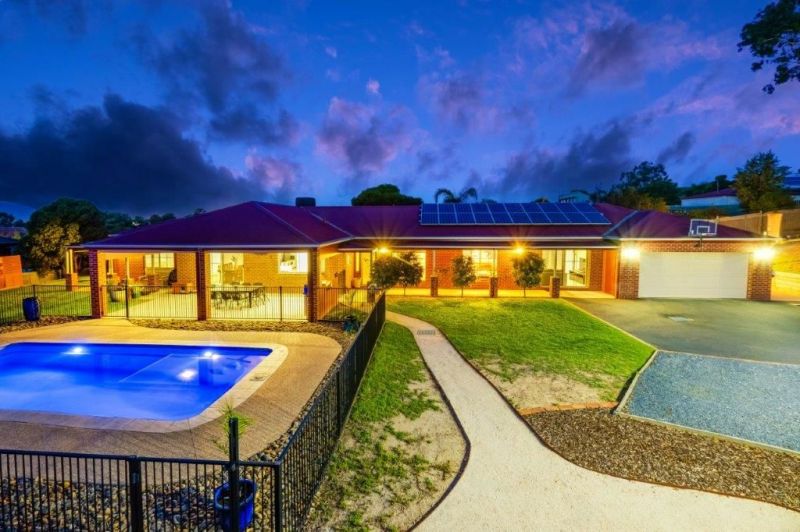 The home is set on just over half an acre which is fully fenced with lush green lawns and easy care garden with watering system. It features a 44 000 litre inground fiberglass pool which is solar heated. Adjacent to the pool is the alfresco area which has a built in BBQ plus pizza oven with plumbed in natural gas. Bifold windows in the kitchen open out to the alfresco. There is a 5KW solar system to reduce energy bills and a 6 x 3m shed for all the tools and leisure equipment. The home has 3 garages attached to the home with remote roller door entry. From the garage there is internal access to the home plus ample parking for visitors and teens.