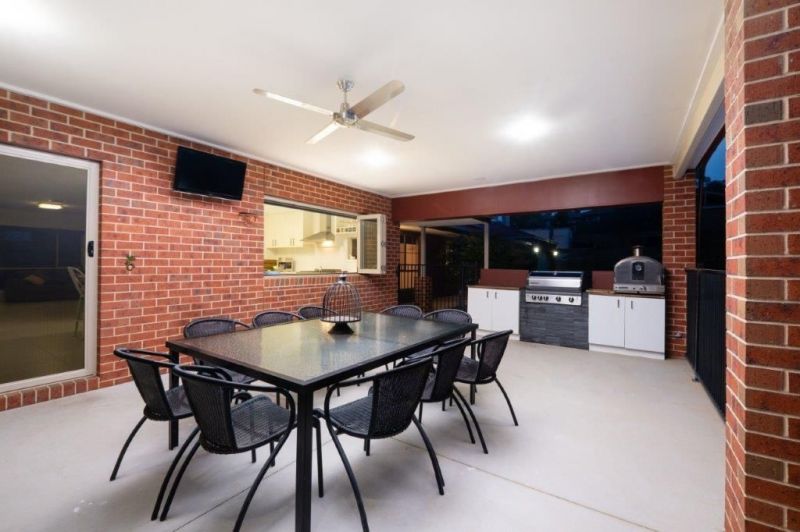 Inside the home you will find 5 bedrooms. The master has an en-suite, walk in robe and a ceiling fan. Three of the bedrooms have generous BIRs and ceiling fans. The fifth room can be used as a bedroom or home business with it's own entry. The main bathroom features a large 2 person size bath.