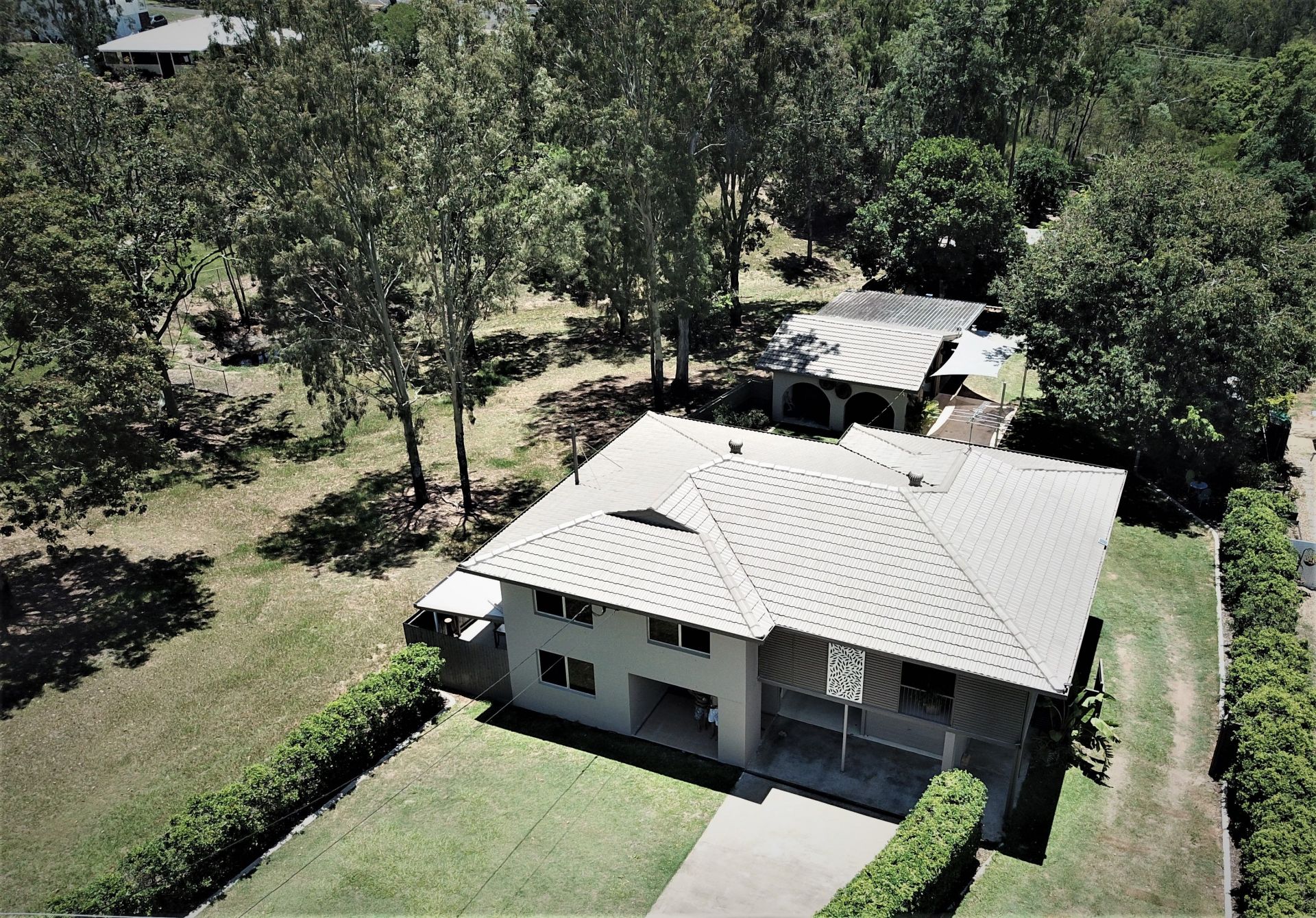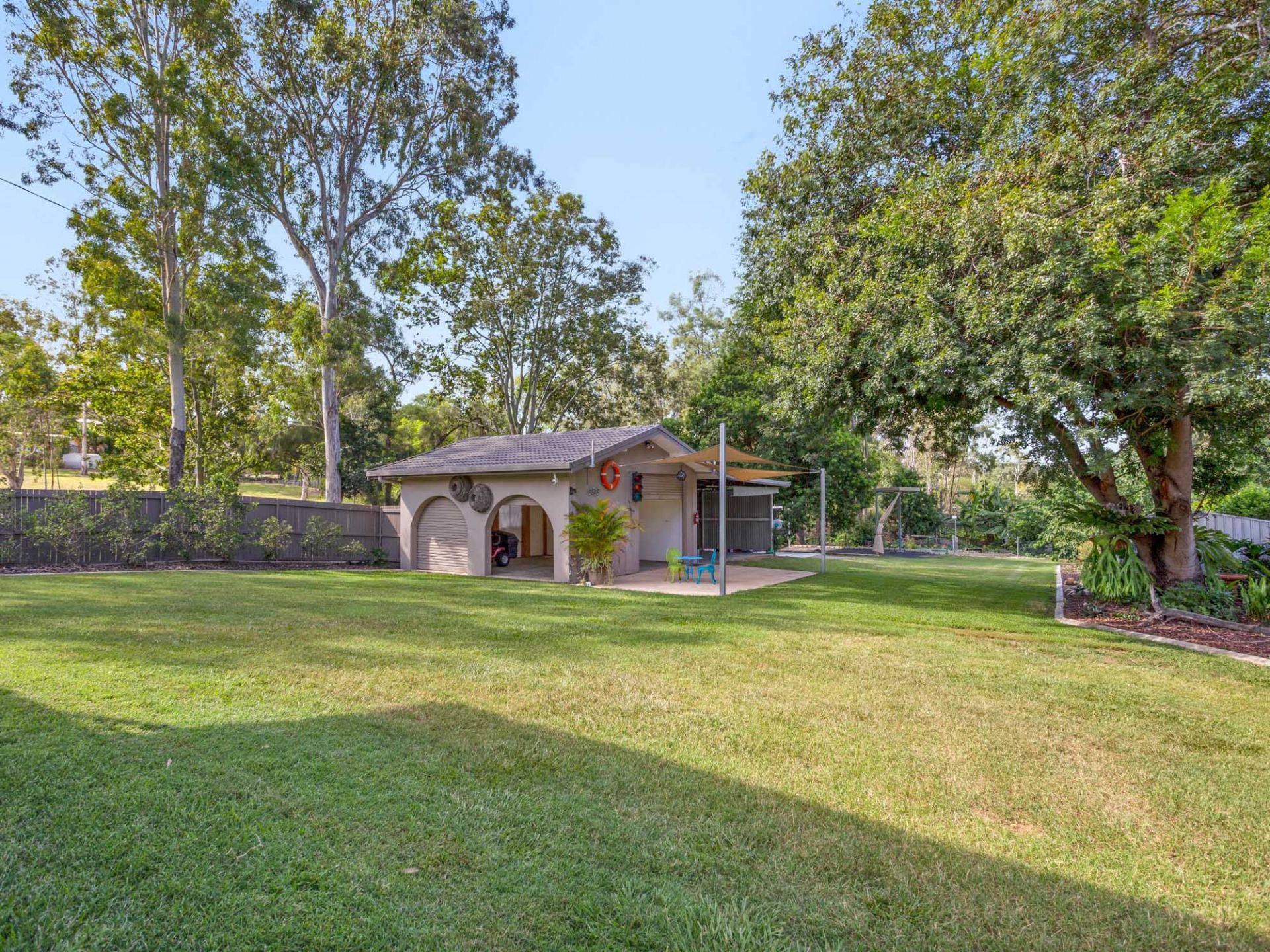 The rear of the property has established fruit and vegetable gardens with a solar irrigation rainwater tank system.