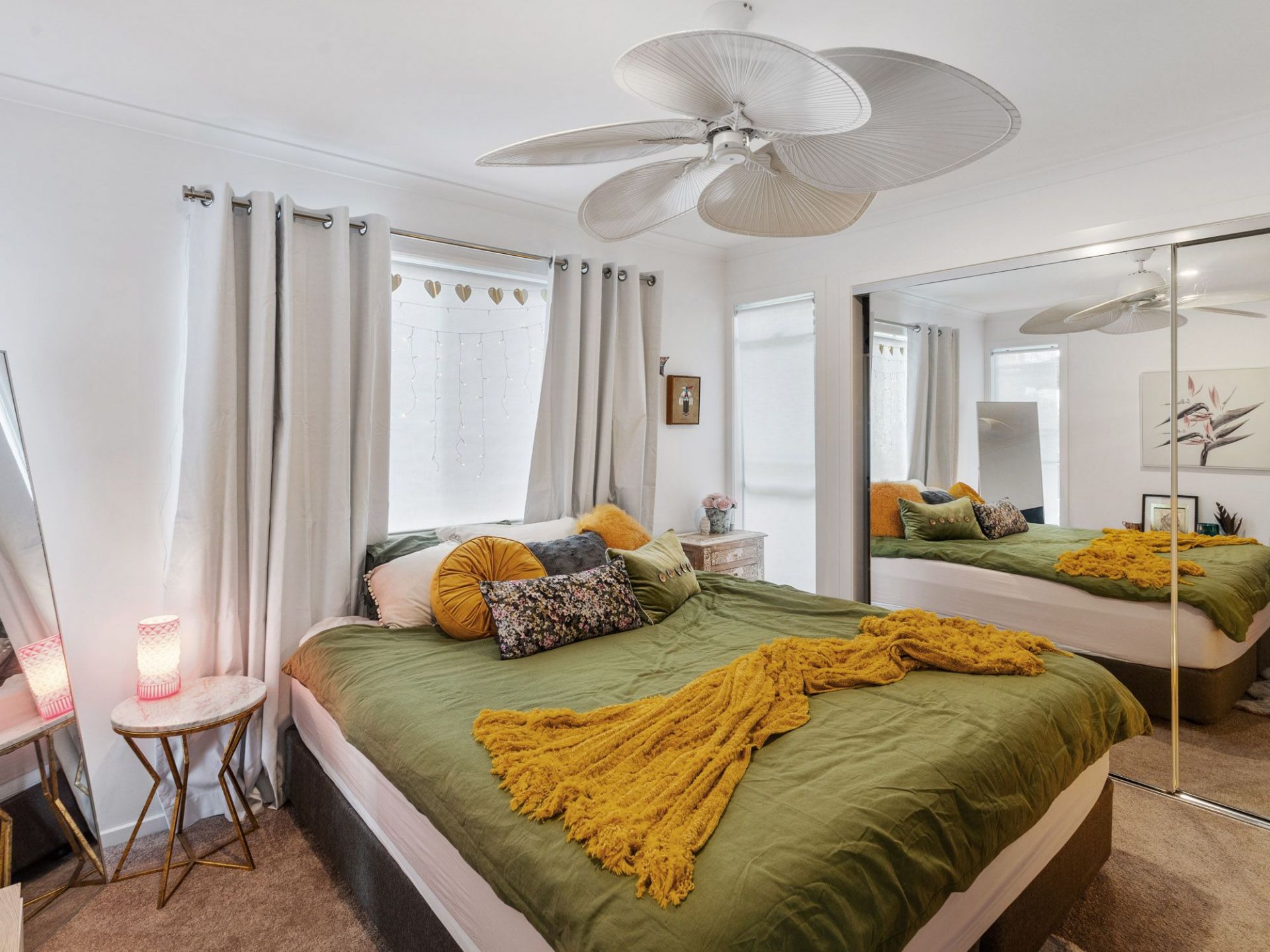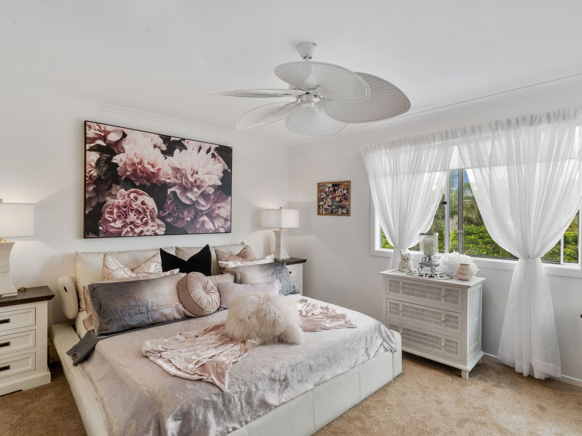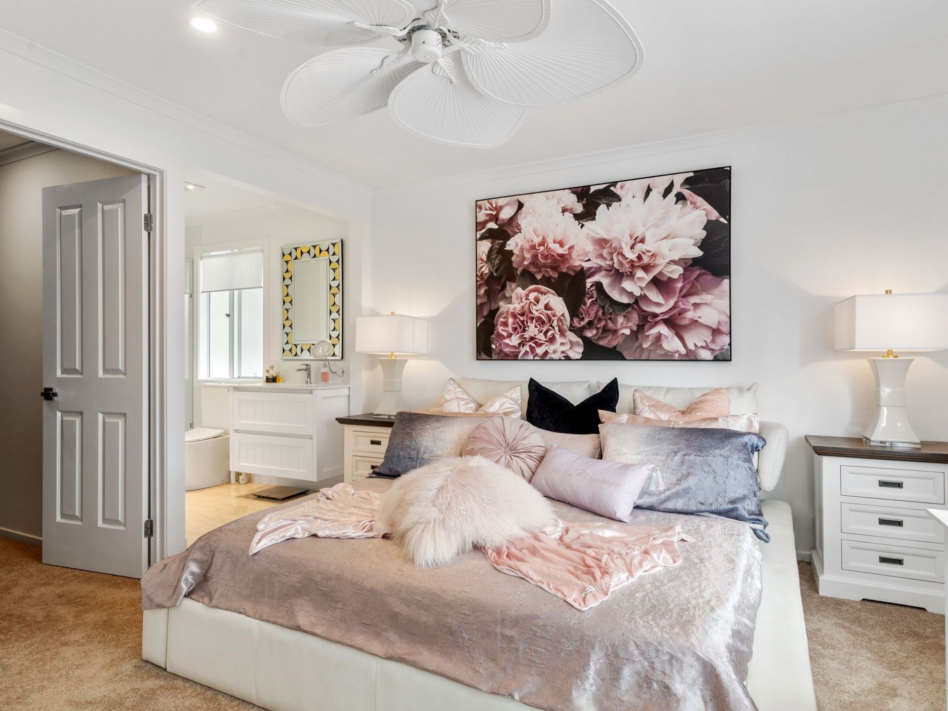 Large bedrooms, main with ensuite in neutral tones.