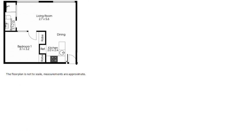 This apartment comprises a spacious living & dining zone with access to a bedroom with built-in robes, central bathroom, a built-in split air conditioner, wall mounted Sony TV, Venetian blinds, and window coverings.