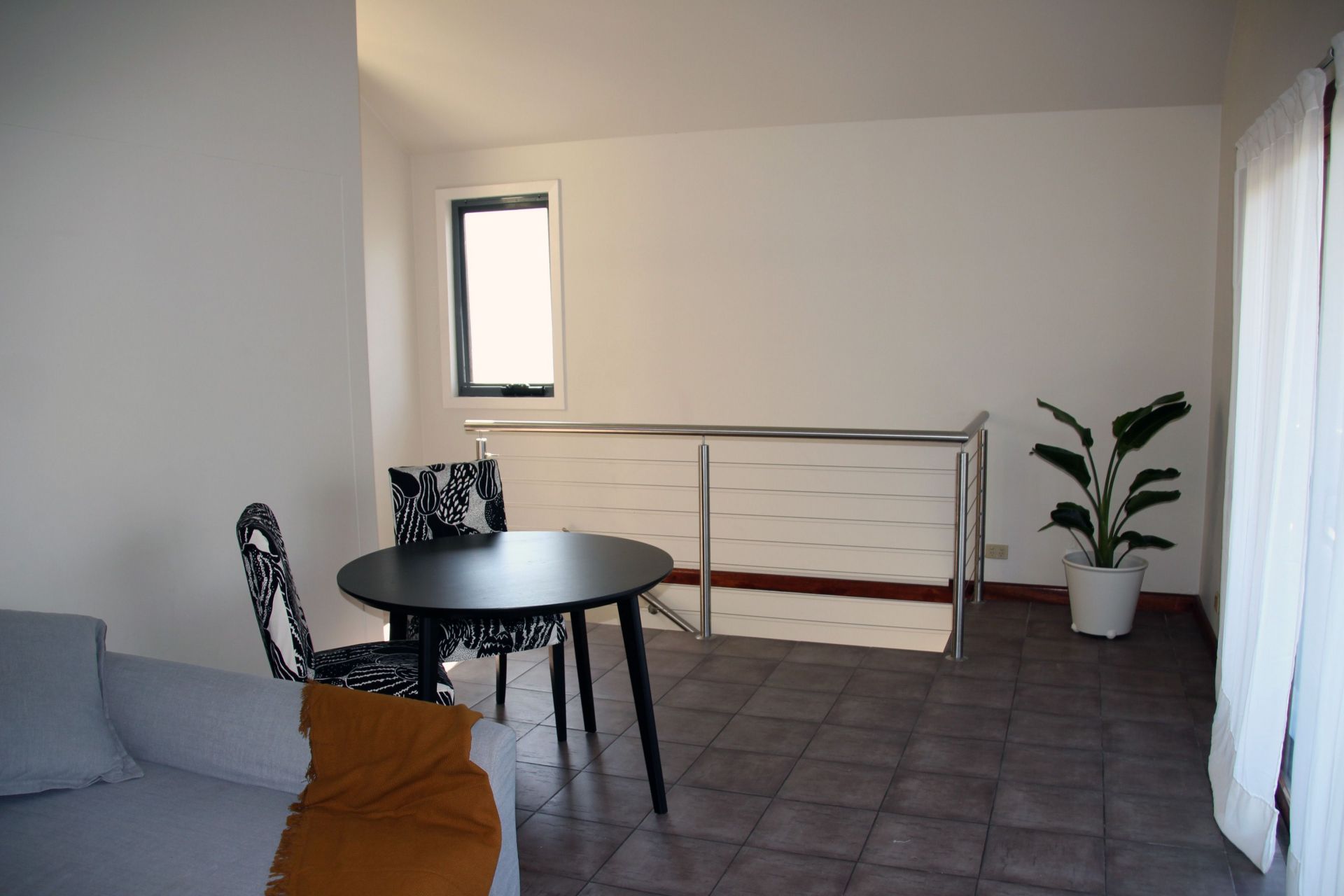 The apartment has modern ceramic flooring with the exception of one carpeted bedroom. An attic space is accessible from the bedroom.