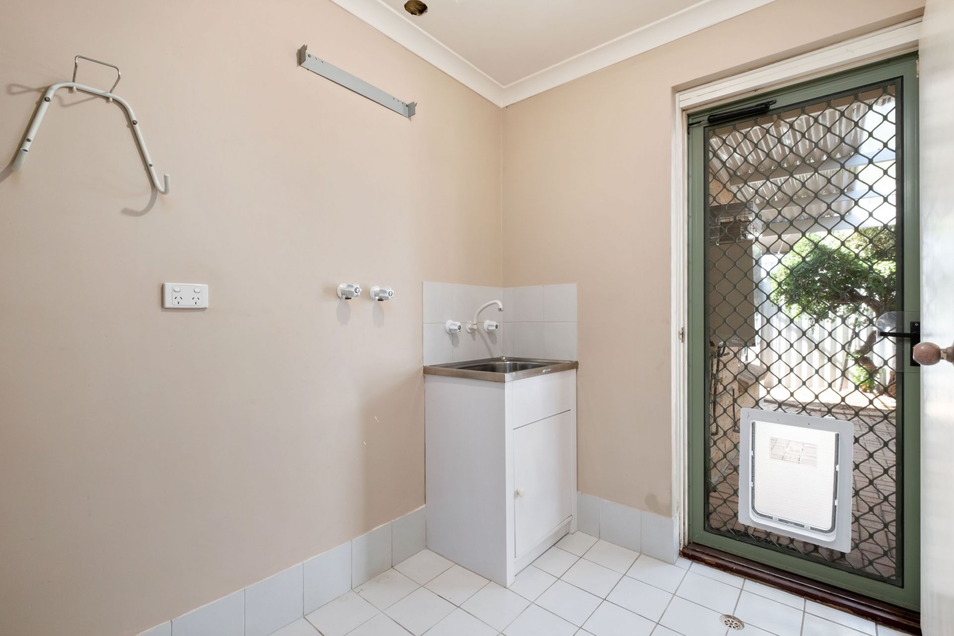 This section of the villa also features a roomy laundry with side access to the exterior drying area, a lockable storeroom and back entry into the secure lockable garage parking for 1 car. A second car can be parked directly outside the garage sheltered under a sail shade.