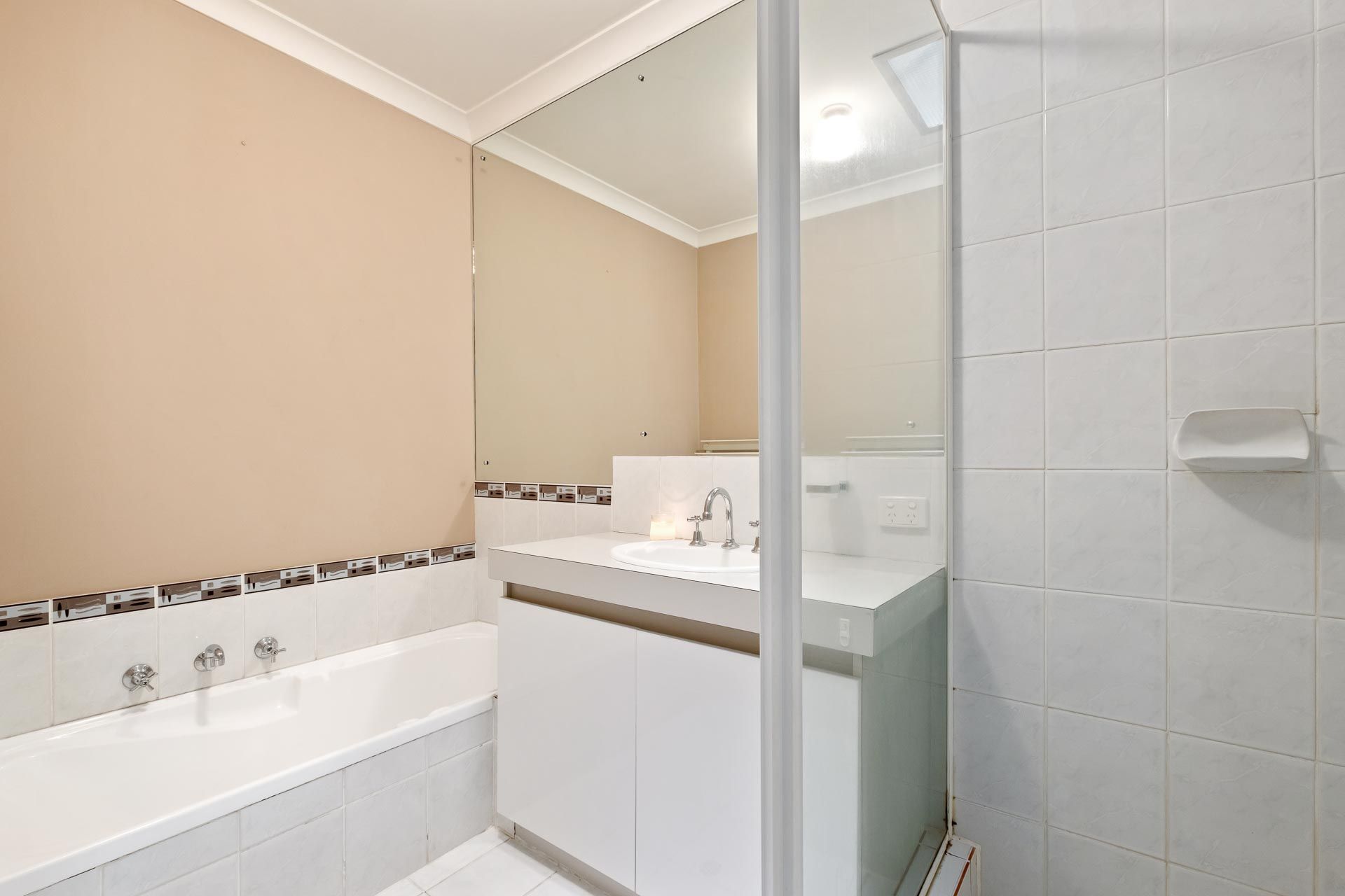 Main bathroom has bathtub, shower and vanity
