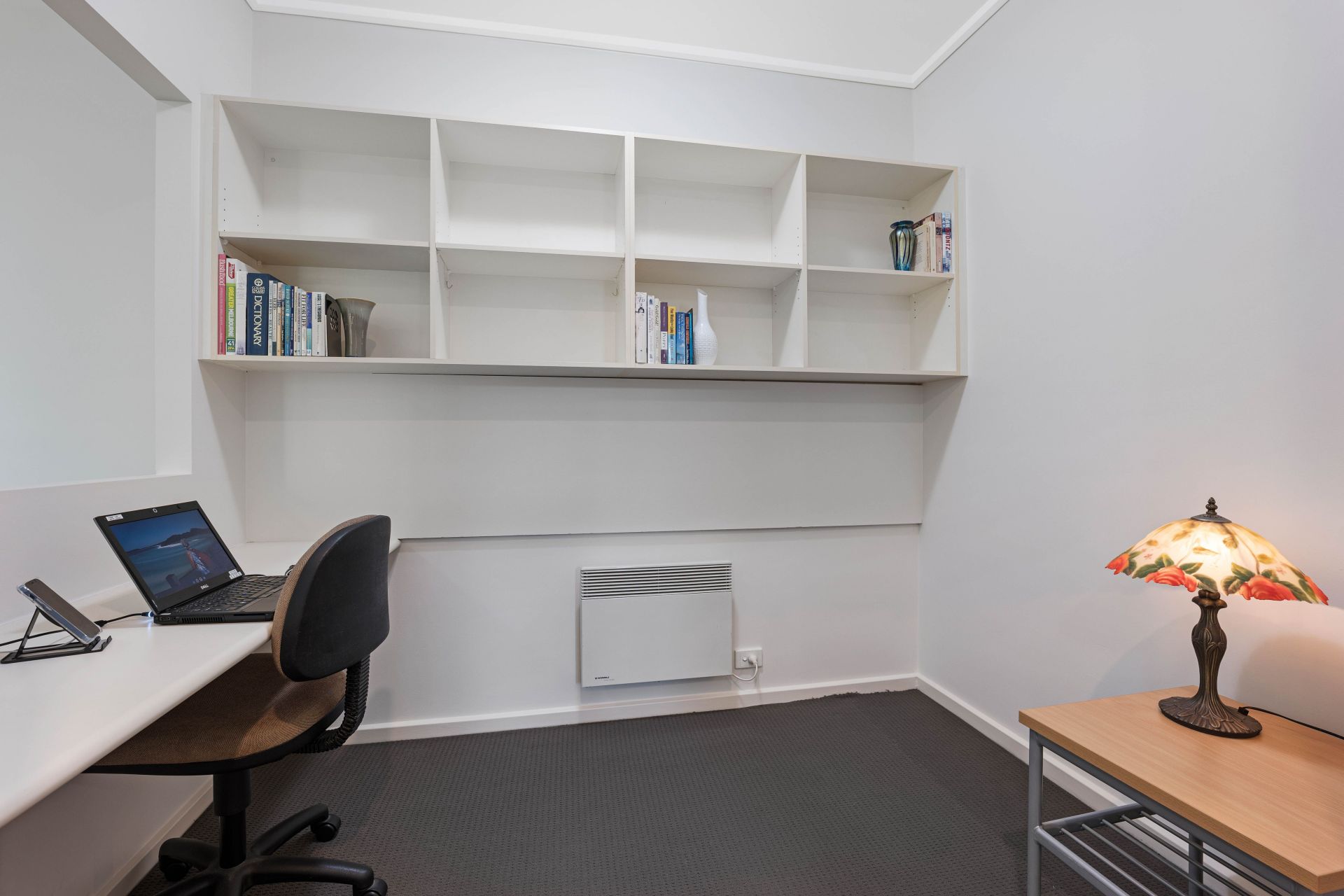 Electric panel heaters in the dining room, bedroom & home office/guest room