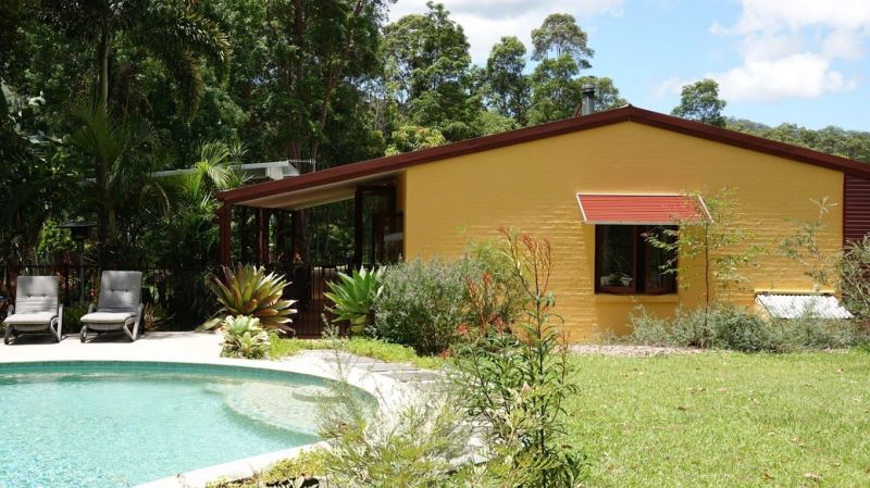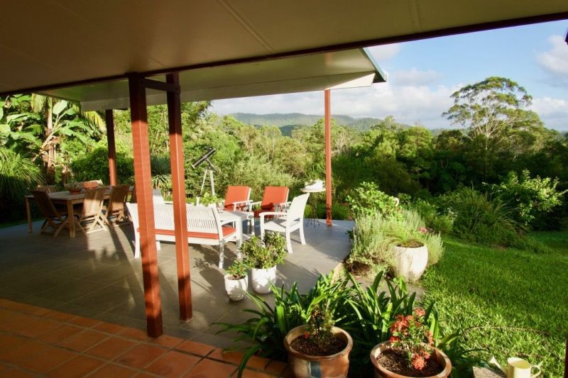 Your approach to the property is over a rainforest creek and up a sealed driveway to the double brick home that enjoys breezes and views over the valley to Mount Nullum and border ranges in the distance. Relax, after a dip in the 12 metre pool, on the large north facing deck surrounded by native trees, palms, bromeliads and staghorns.