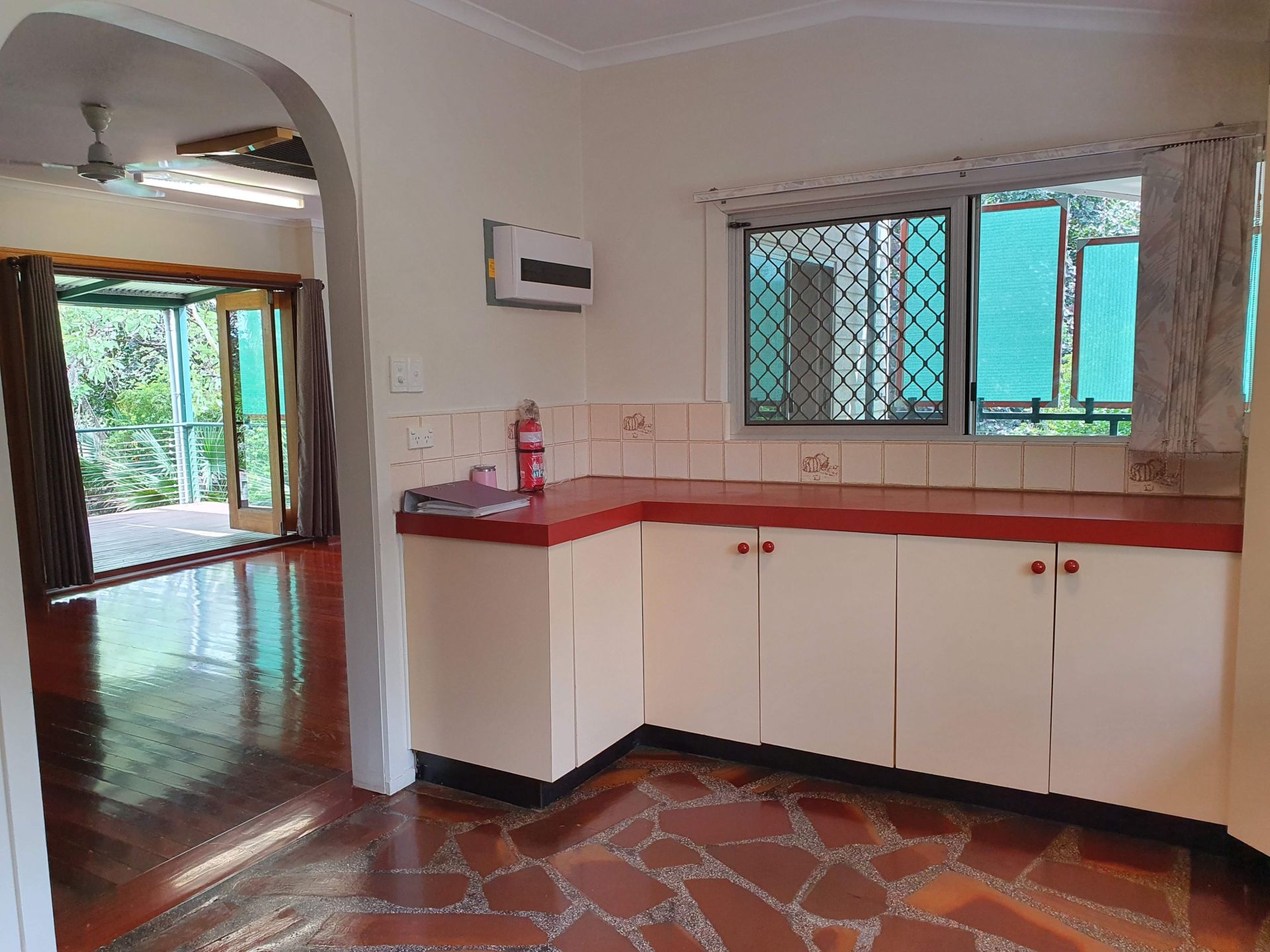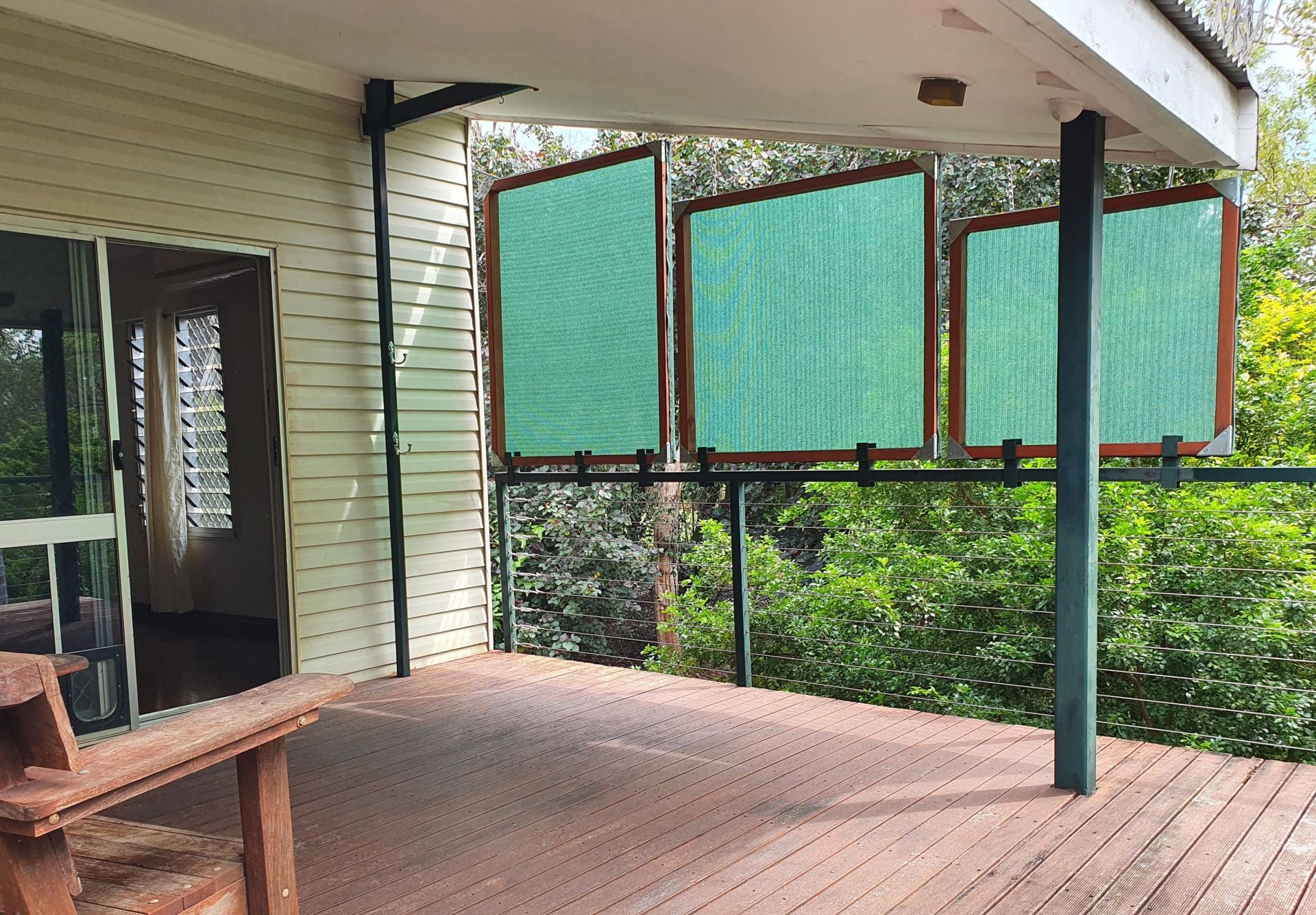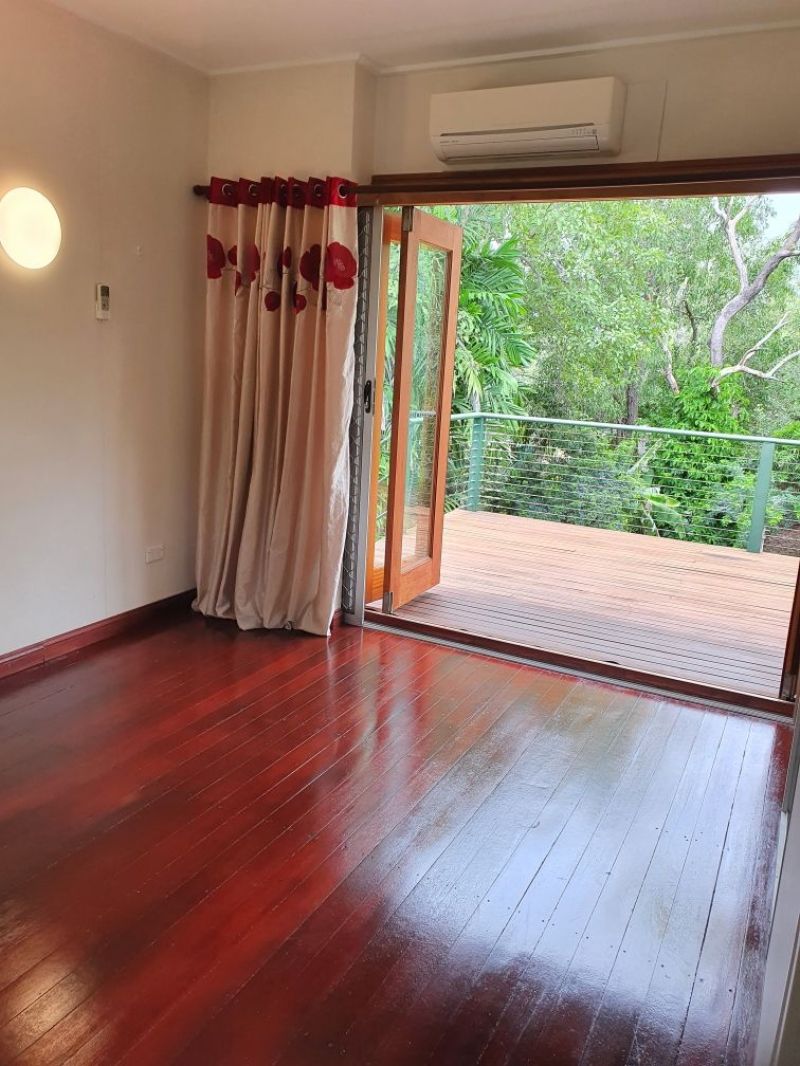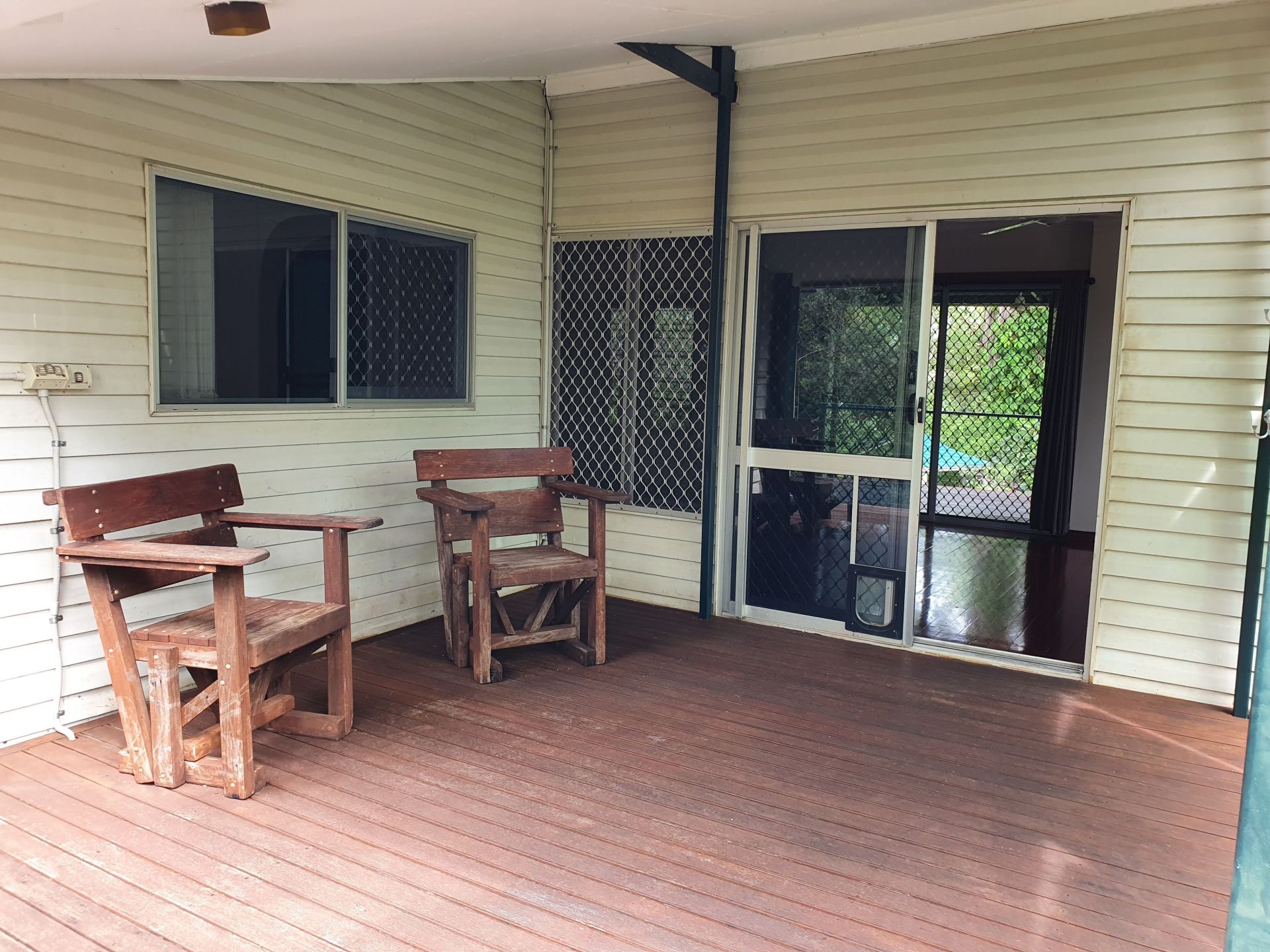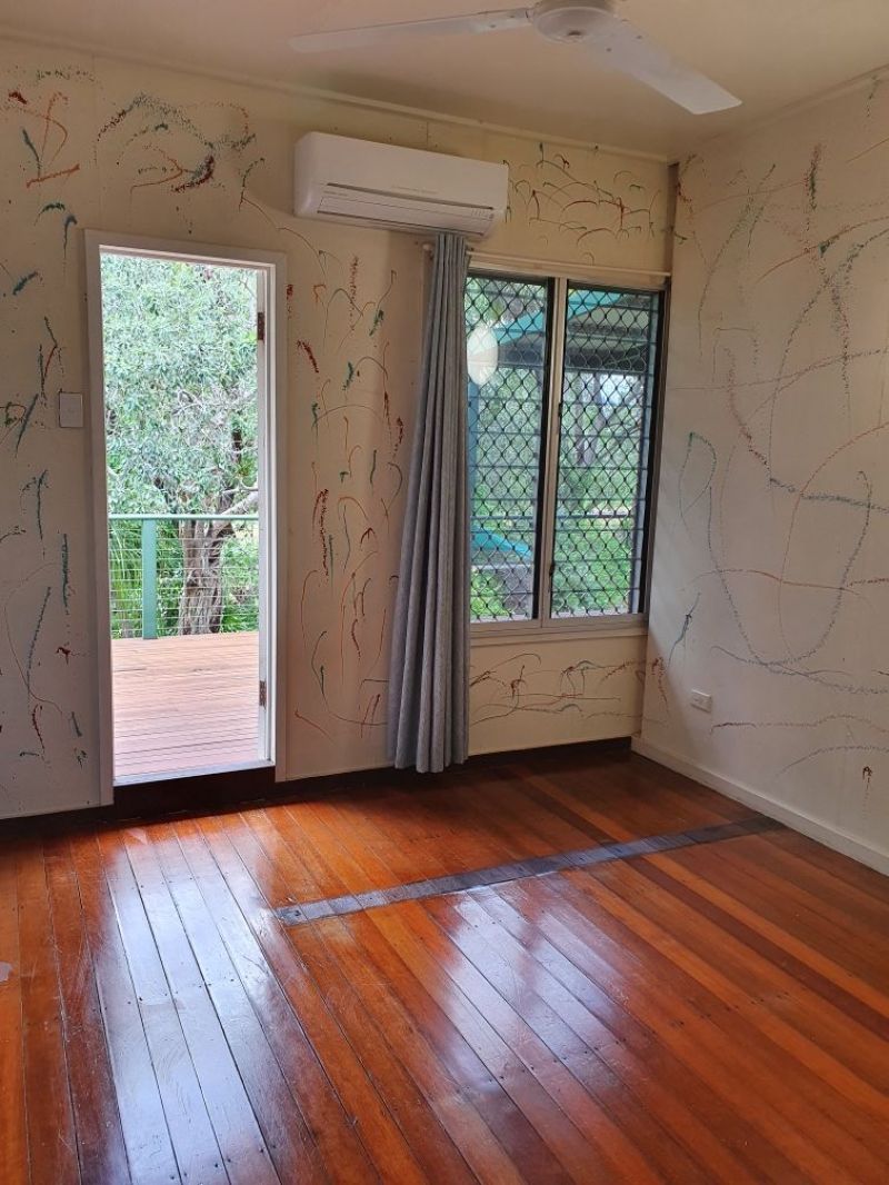 Your new home is a high set three bedroom, one bathroom house with a large kitchen and boasts a 20m x 4.5m verandah overlooking a beautifully established garden. The living area and master bedroom both open onto the massive verandah via bi-fold doors. Relax and enjoy your morning coffee while taking in the sights and sounds of living in a secluded bush setting.