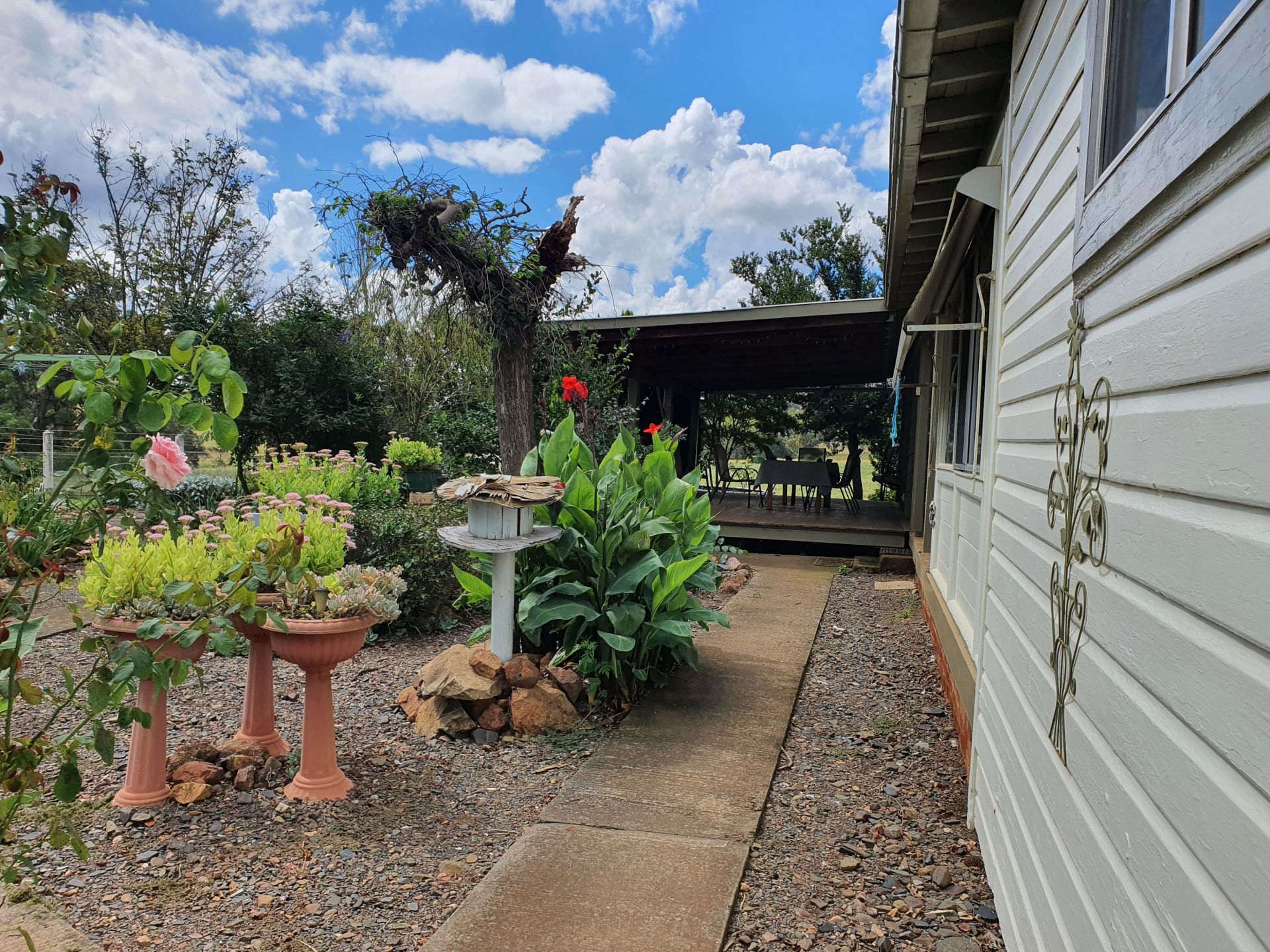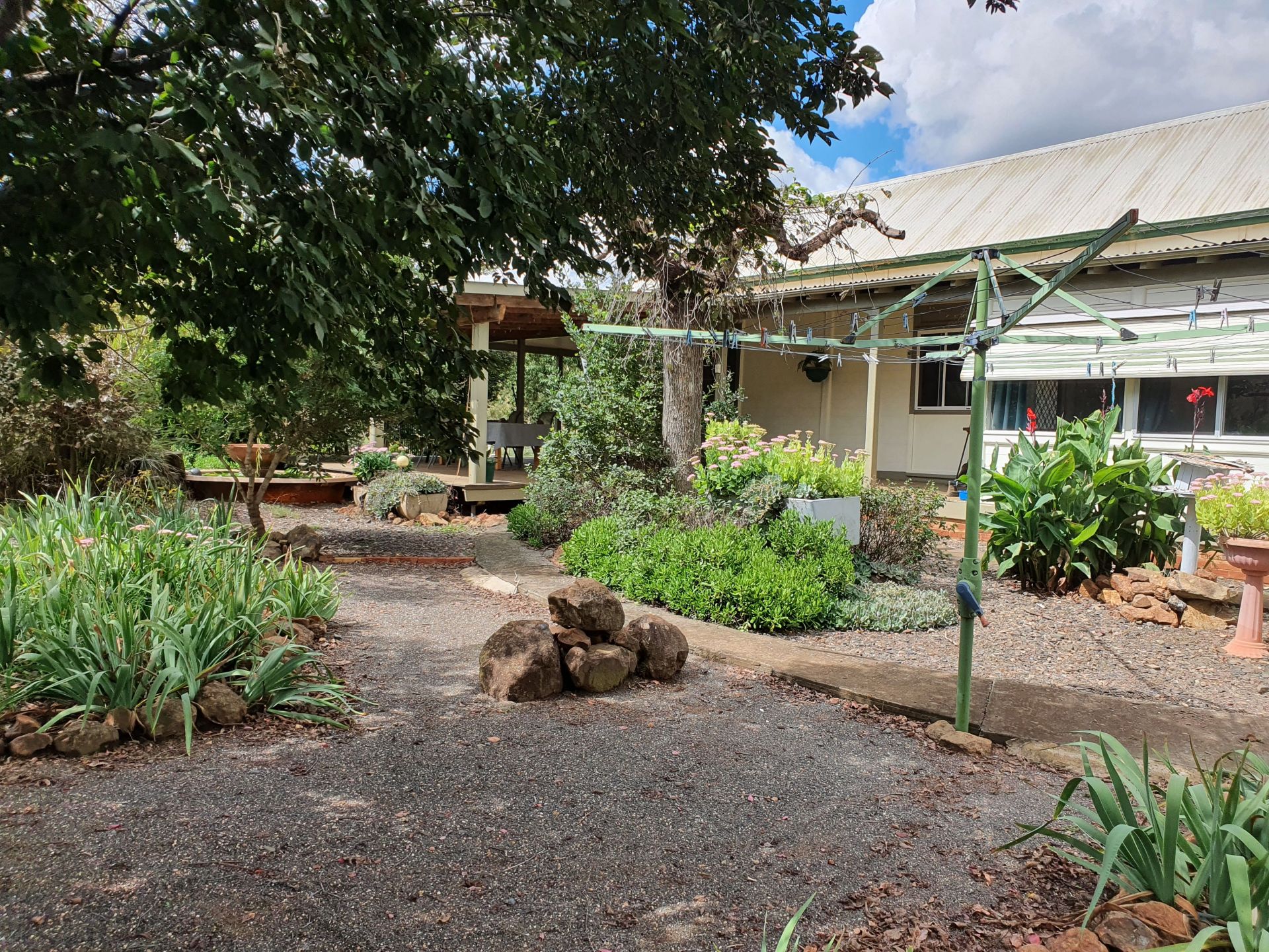 Step outside onto a huge verandah overlooking beautiful gardens, fruit trees, nut trees and a green house.