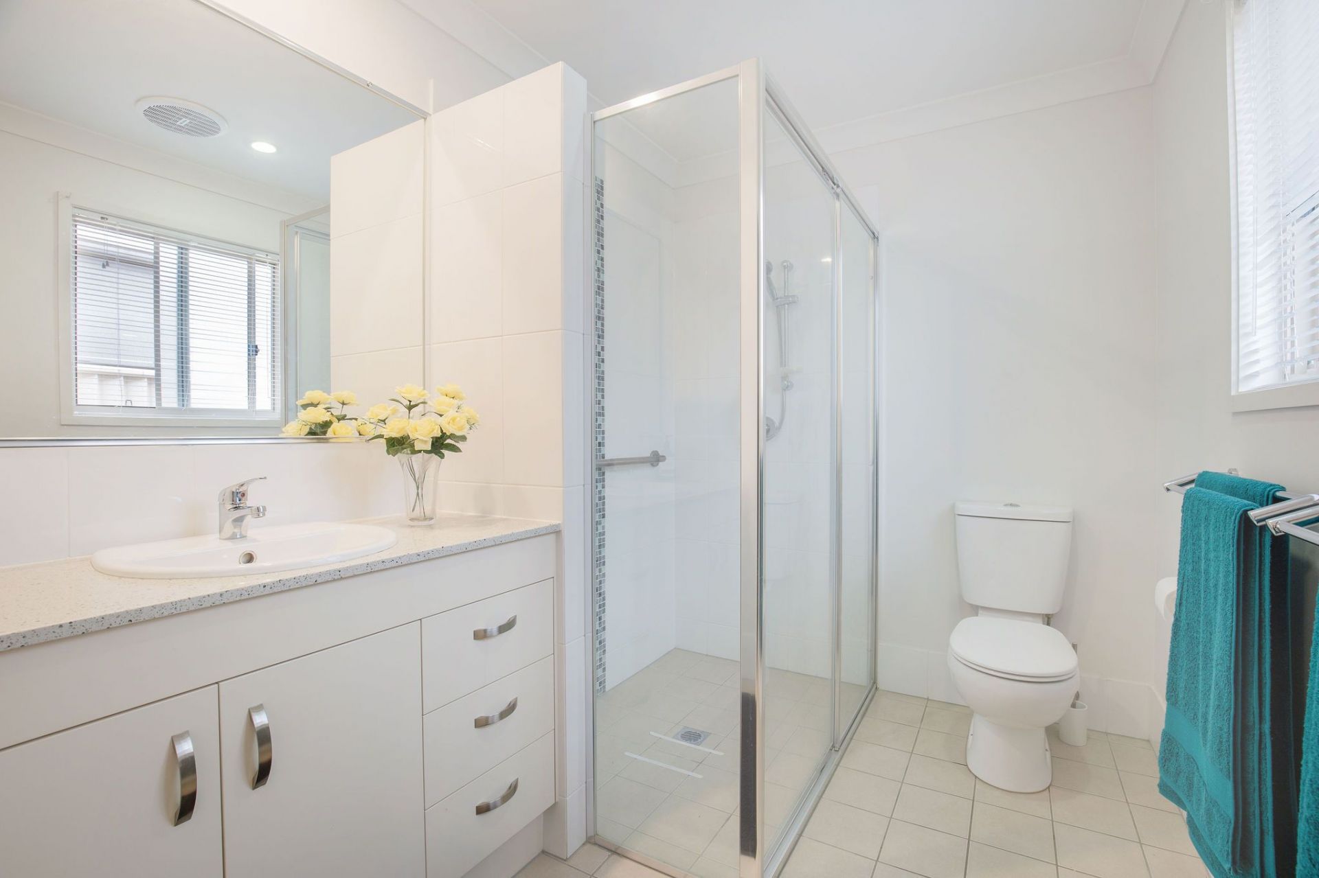 • Modern second bathroom with a double shower that is big enough for two!