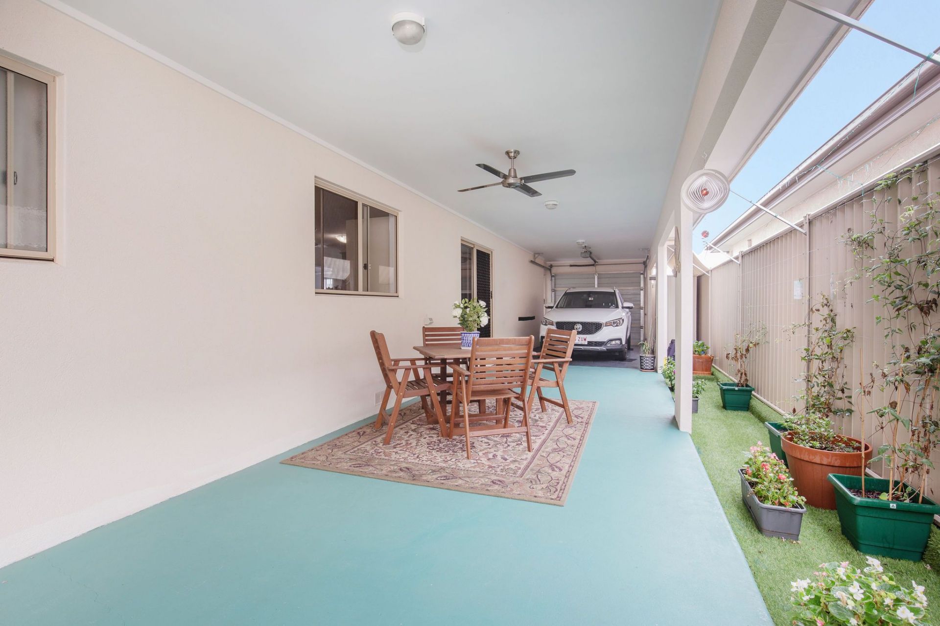 The property also features ceiling fans in all rooms, including the private alfresco area and air-conditioning in the dining area that is perfectly situated to cool the whole area effortlessly. The attached garage can house either 1 or 2 vehicles in tandem.
