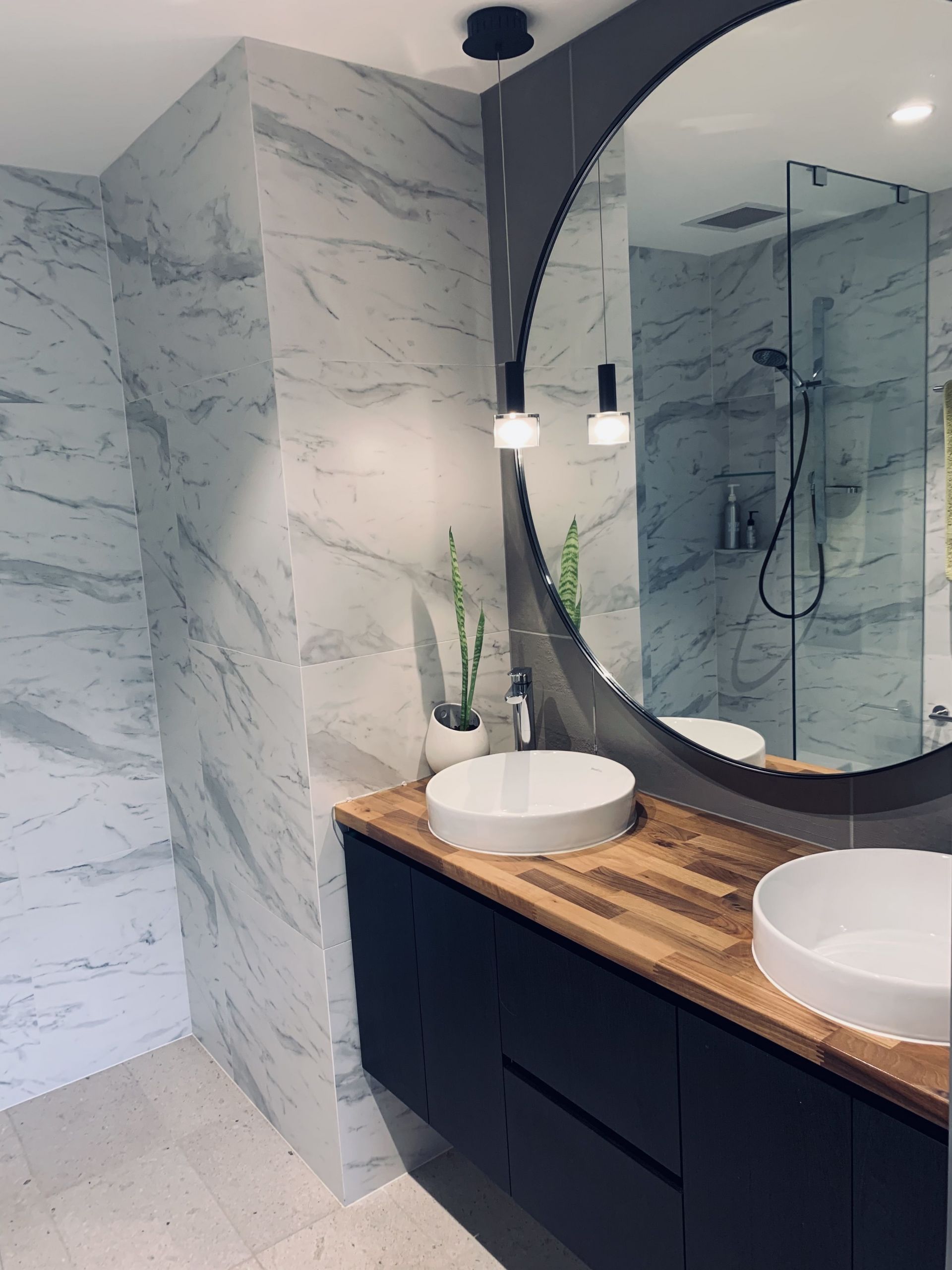 - Engineered grey stone waterfall benchtop