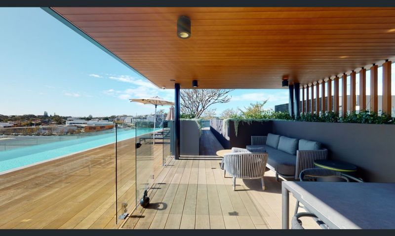 It features a 14.6 square metre balcony that allows abundant light to flood the 2 queen-sized bedrooms and open plan living area. The outlook is directly onto the lush greenery of the park, uninterrupted by neighbouring dwellings and very private. It also features a reticulated large planter box with established Star Jasemine growing up a trellis, providing further privacy and shade, plus a double outdoor power point.
