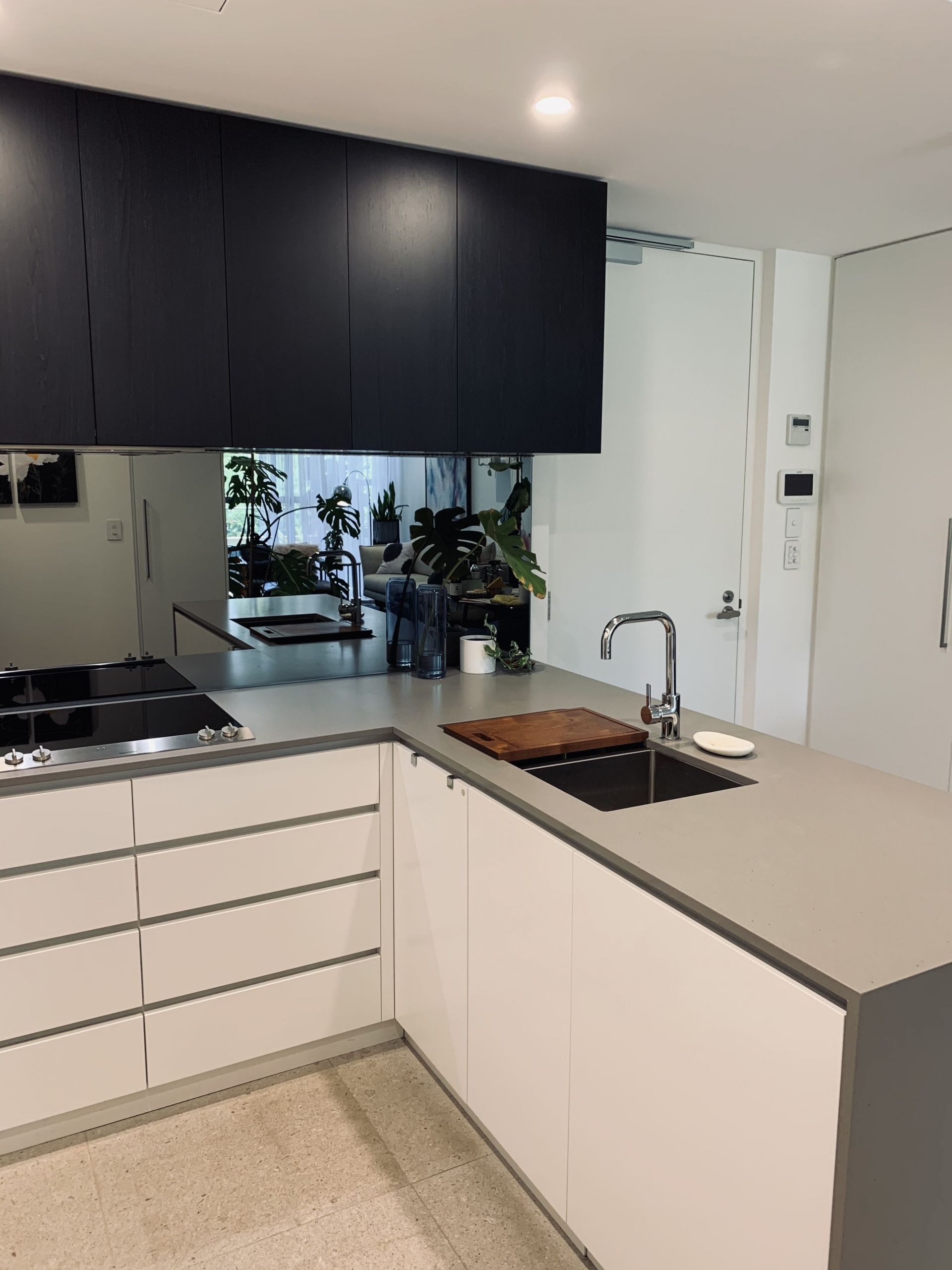 - Smoked glass splashback