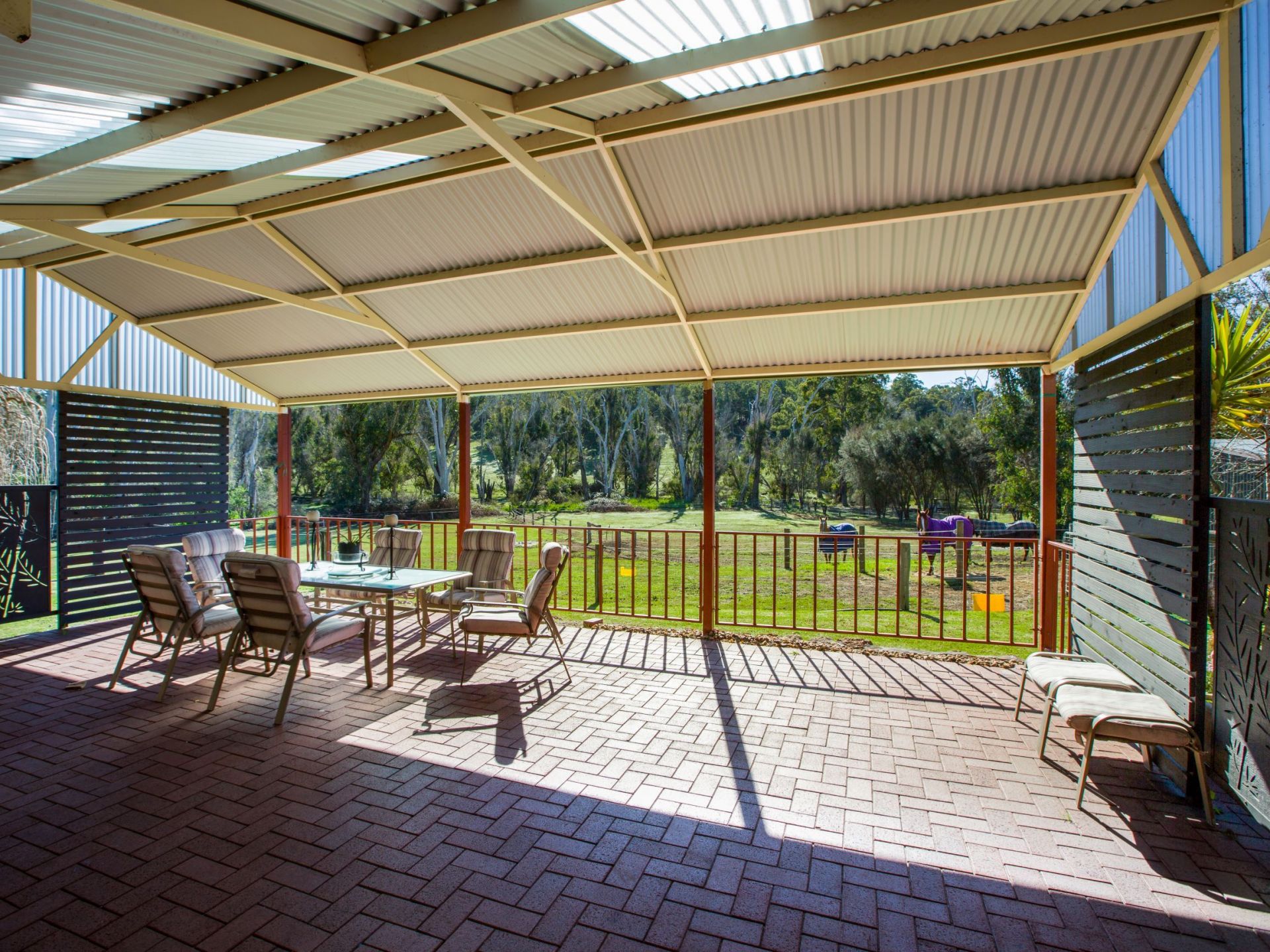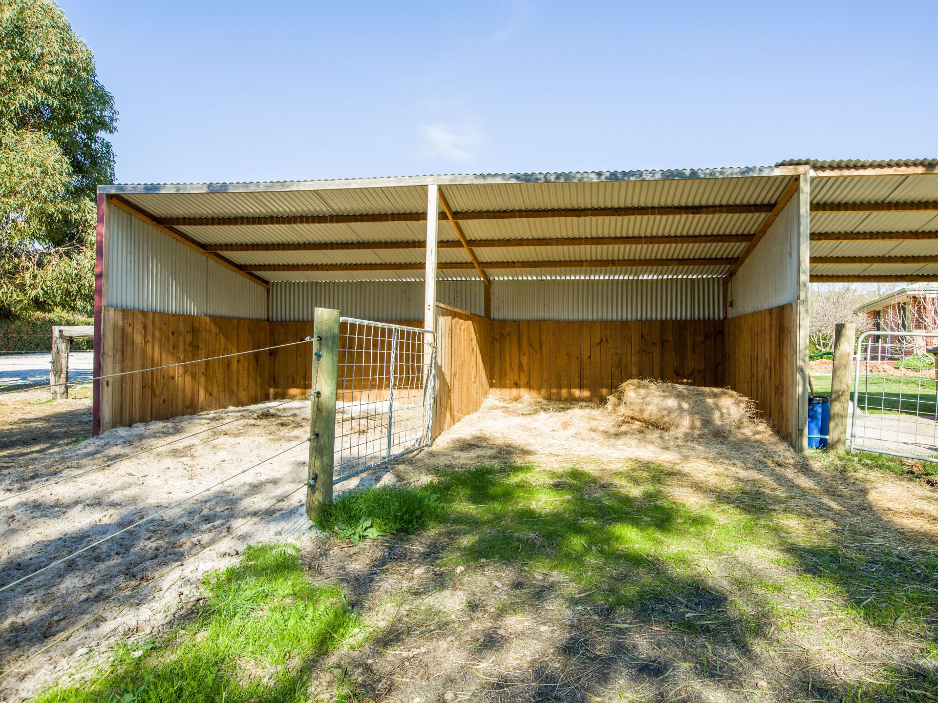 Two generous paddocks have electric fencing and plenty of gates allowing easy access. The ground is fairly level with a slight slope down to the banks of the river. The main paddocks have colorbond, timber lined stables with a concreted feed bay and farrier shelter. A separate horse arena with sand is securely fenced. The large powered barn provides secure parking for two vehicles along with a workshop area, mezzanine storage plus undercover parking for a horse float.