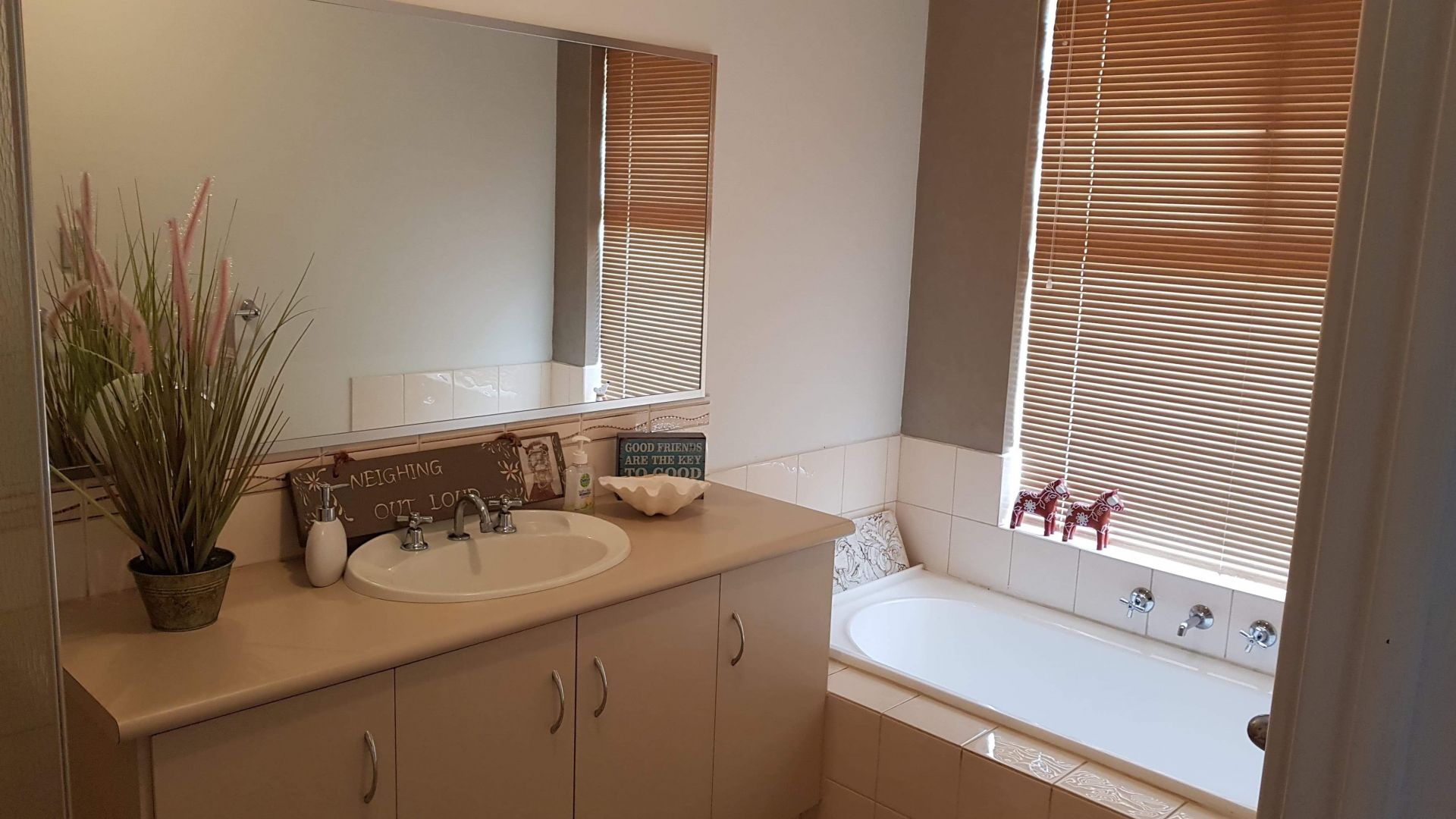 Heading inside, you enter through the double doors into a foyer and then into the huge open plan casual living zone with high ceilings. This family, dining and kitchen area will quickly become the heart of the home and is the place to snuggle in and enjoy a movie or Foxtel on a cold winters night. NBN connected. The home is divided into two wings. On one side is the study with built in store and the spacious master suite which has a walk in robe and ensuite. The other wing comprises the large activity room, three generous bedrooms, main bathroom and laundry with huge walk in linen store. This zone can easily be closed off for peace and privacy and is ideal for a multi generation home. Another option would be to let out for short stay accommodation where permitted. All bedrooms are carpeted and there is floating timber flooring to the remainder of the home. Keep comfortable all year around with a cozy wood burning fireplace as well as ducted reverse cycle air conditioning. Added features include solar HWS, roman blinds throughout and rollers shutters to the west facing bedroom.