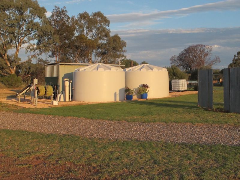 23,000 litres for tree watering, s/steel Grundfos pressure pump, delivery via Ring Main system and drippers.