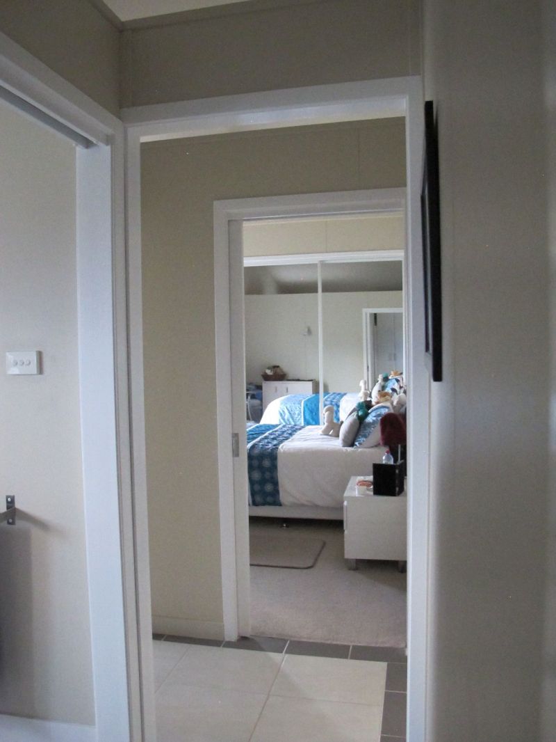 Most internal doors are cavity-sliders, with Crimsafe front screen door.