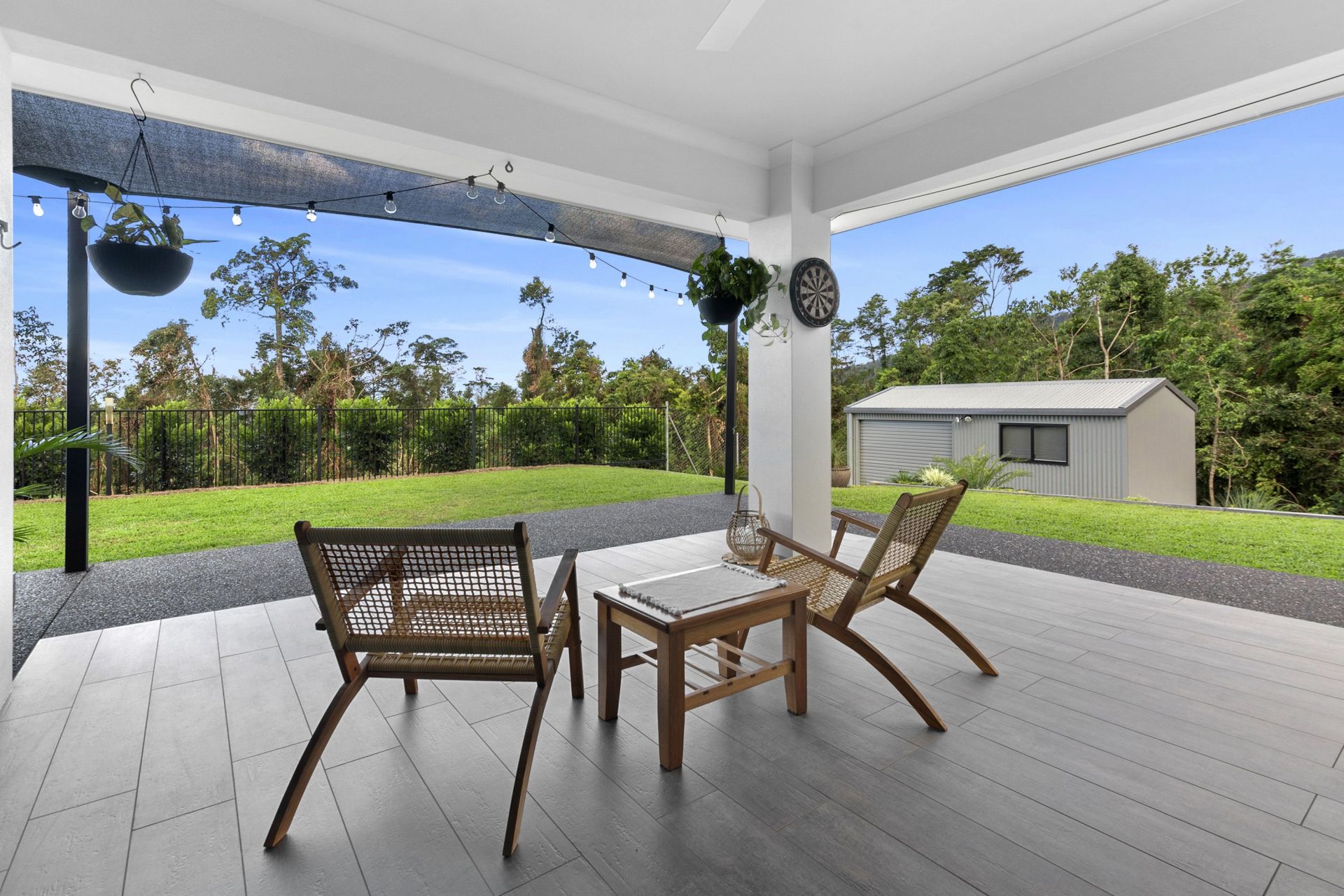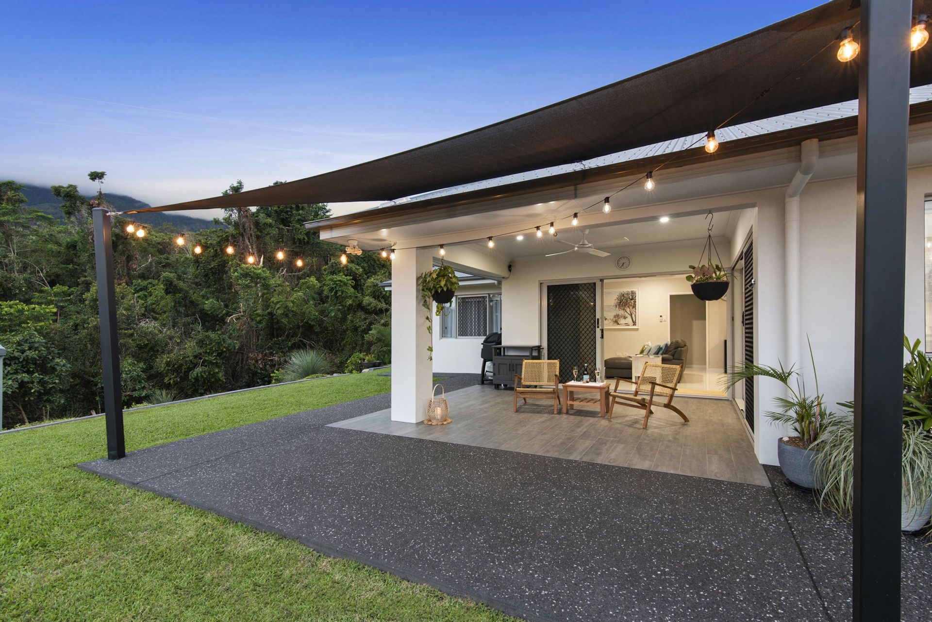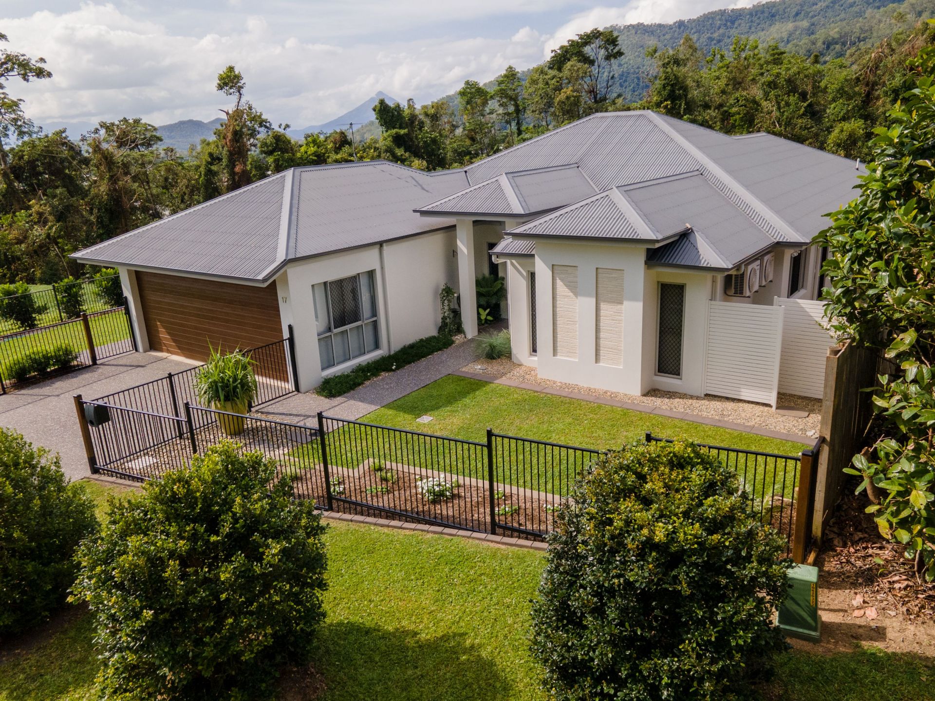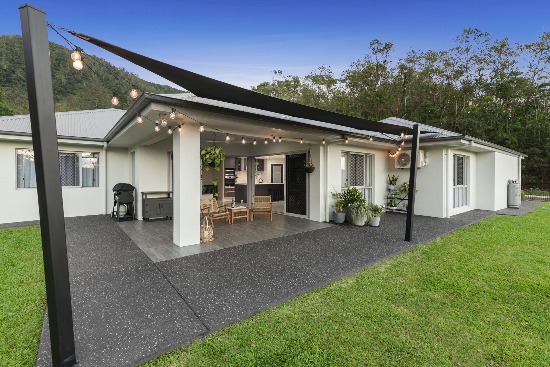 Tucked away high in Tranquillity Estate, in Upper Bentley Park this modern tropical home nestles itself among the foothills of the mountain ranges beyond. Boasting 4 bedrooms, 2 bathrooms and a media room, this fully air conditioned home possesses the unique luxury of having only one neighbour, allowing for privacy and the enjoyment of sensational sweeping mountain views and cooling breezes all year round.