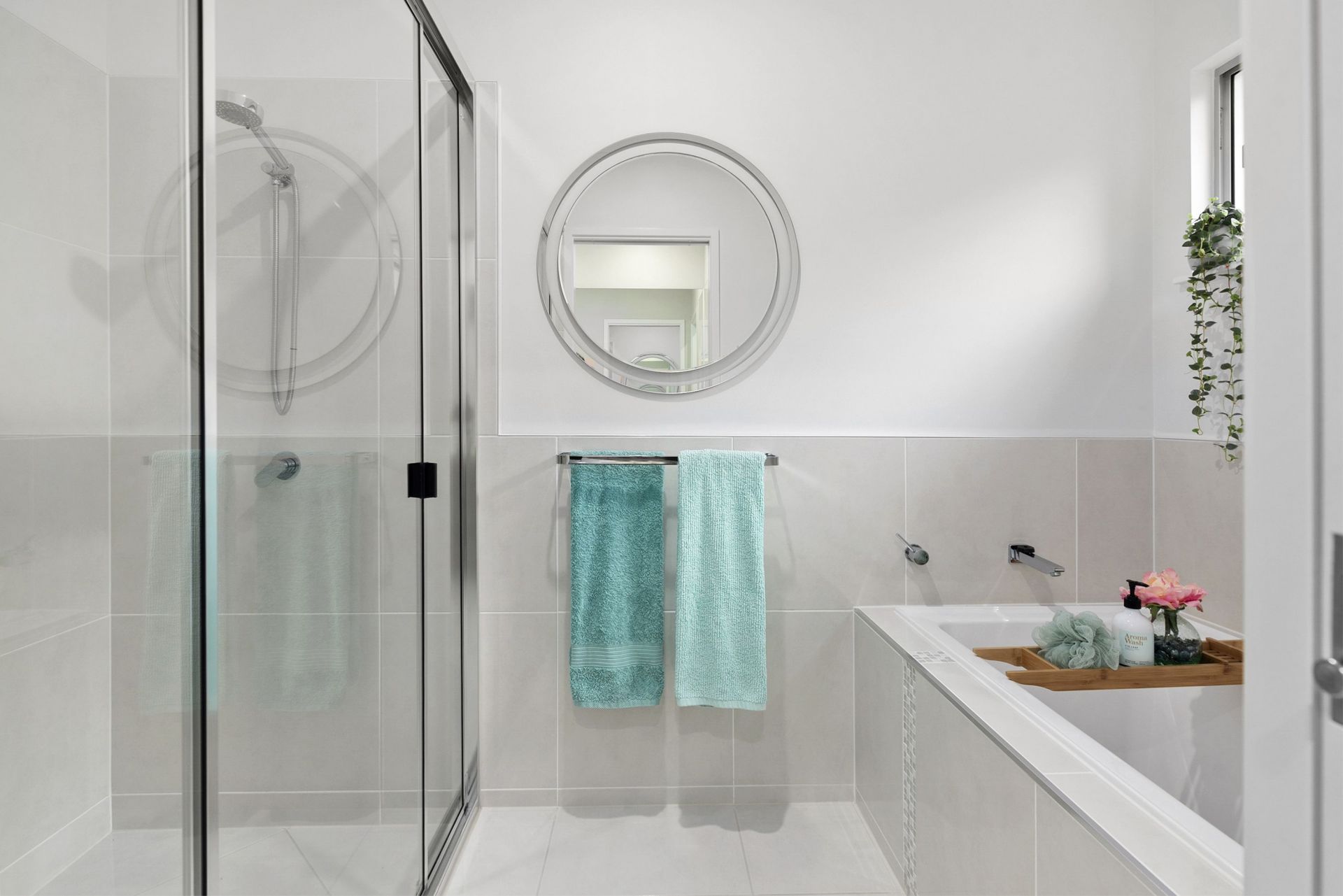 The double garage is larger than standard with additional width and height to include extra storage space, a cyclone rated lockable roller door and an indoor collapsible clothesline.