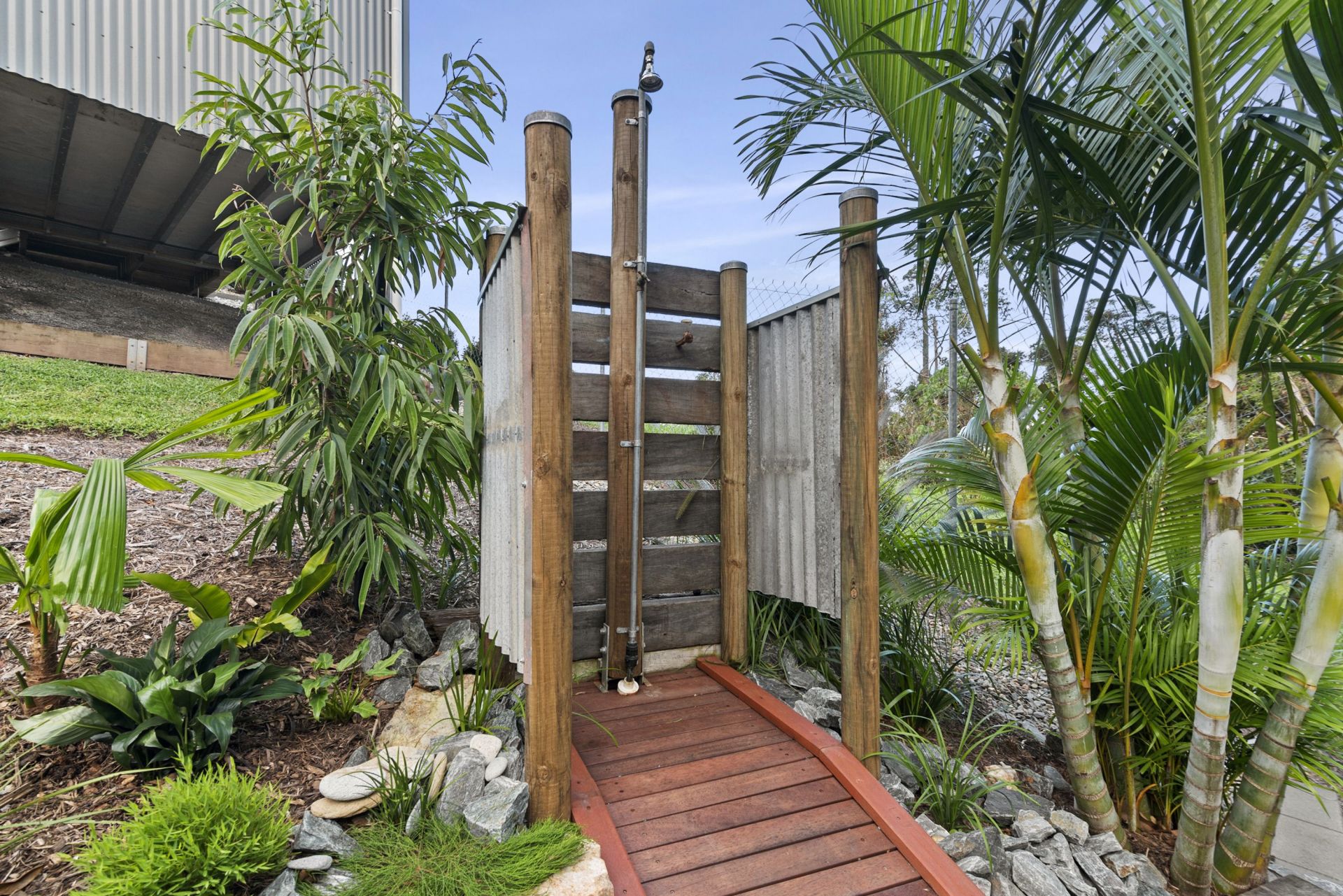 This outstanding property is equipped with irrigated landscapes, encompassing the land to the seasonal creek. The manicured gardens include adequate lawn areas for family fun, established fruit trees, a raised vegetable/herb garden with tropical shrubs along the fence line for added privacy. A discreetly positioned rustic bush shower can be found towards the back of the property surrounded by a tropical oasis of plants overlooking bushland. For added security, the house is fully fenced and equipped with outdoor sensor spotlights and security screens throughout. Additionally, the property offers double gate side access with ample space for a pool, boat or further structures.