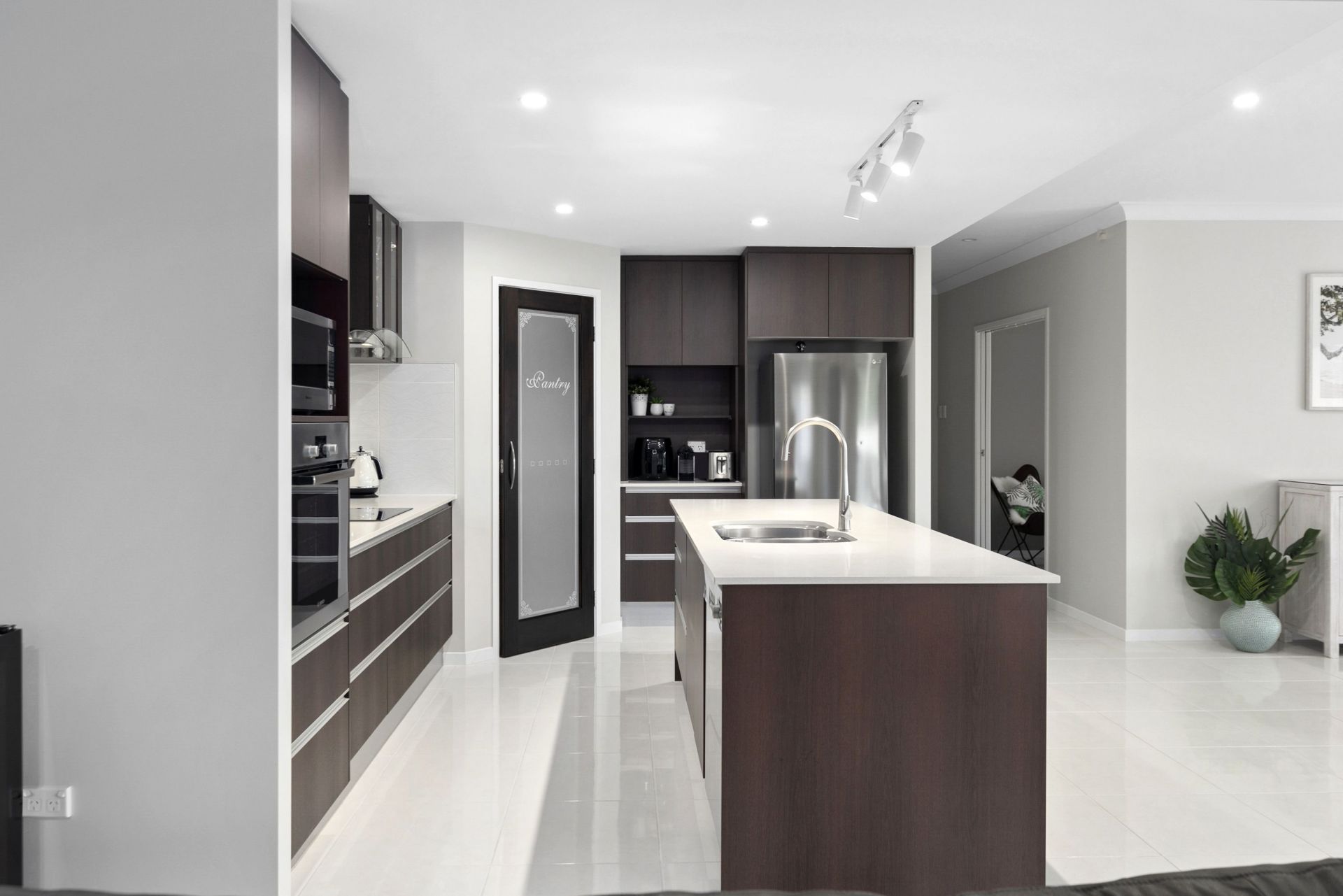 Designed to embrace comfortable living, this home has a discerning neutral colour palette that adds depth and sophistication, an open plan living area that showcases the abundance of natural light, a walk in pantry, study nook and generous storage spaces. The relaxing outdoor undercover tiled entertaining area has been designed around two walls of large glass sliding doors to capture the stunning views and cooling breezes. This area is surrounded by black exposed aggregate walkways that are partially covered by a shade sail for sun protection and enjoyment of the outdoors and has been completed with the addition of festoon lighting to add an ambient or party atmosphere.