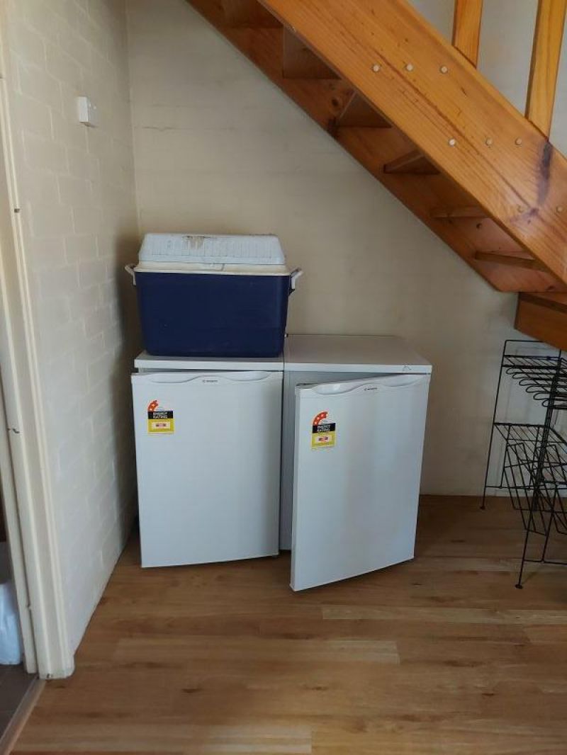 The main bedroom is situated downstairs as is the laundry, bathroom and open plan kitchen, dining and living area. The Living area has a TV & CD player and the kitchen is well equipped with stove/oven, microwave, new fridge with separate freezer and drinks fridge.