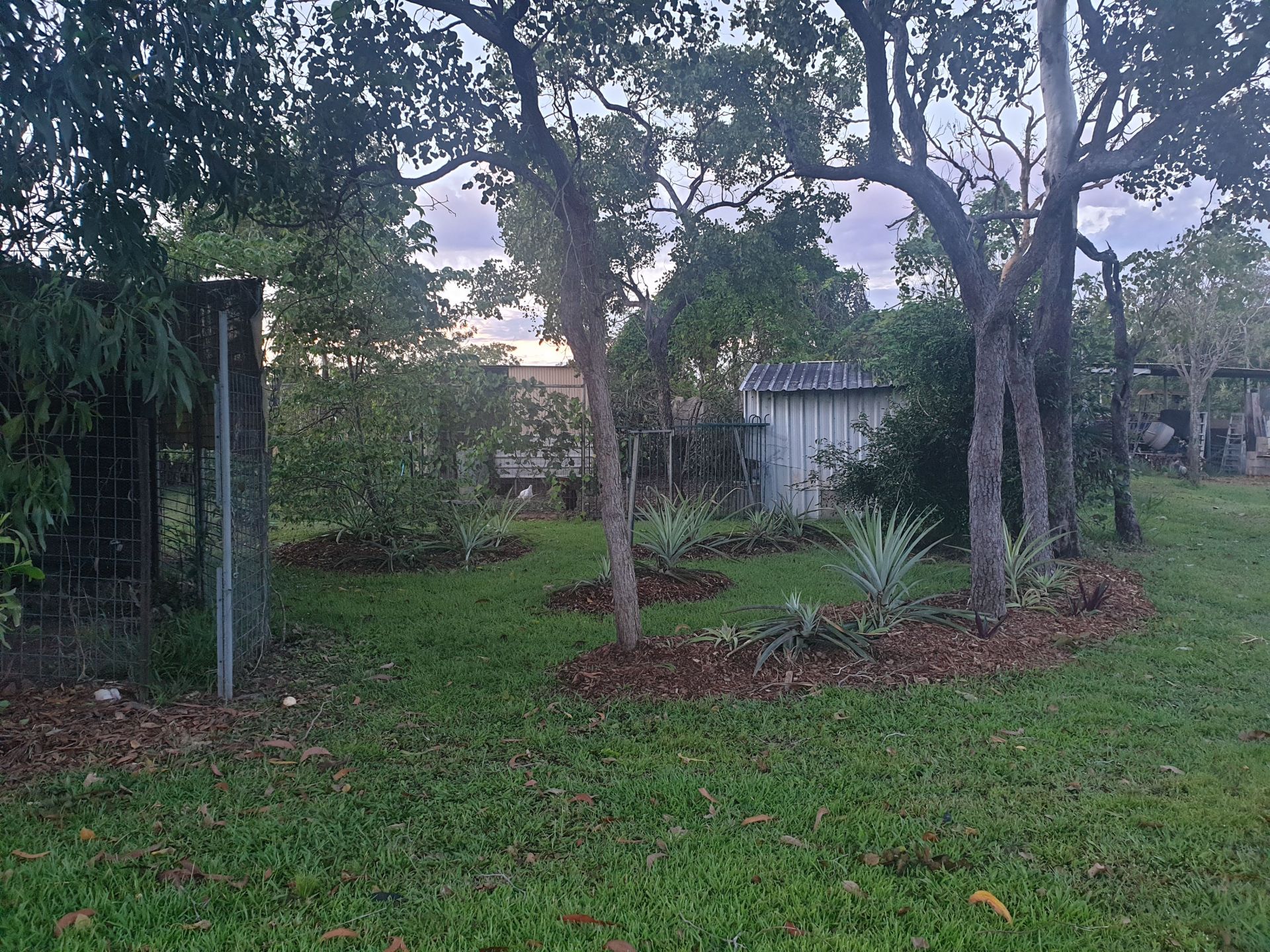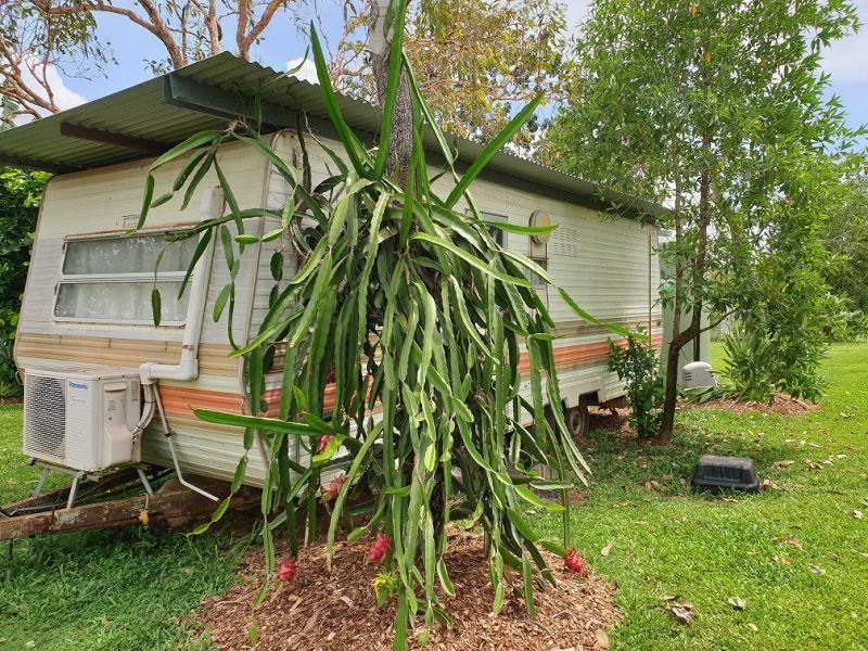 The home yard has modest yet comfortable accommodation including a 12x3m demountable sheltered by a large 24mx12m veranda fully enclosed with shade-cloth to keep mosquitoes out. The demountable and veranda are cyclone coded. The demountable has 1.5 bedrooms, lounge/study and a bathroom. There is an additional outdoor bathroom on the veranda as well as a large modern kitchen. The kitchen overlooks a dining area and an 8mx4m salt-chlorinated pool making it the perfect place for entertaining or relaxing and soaking in the serenity. A variety of tropical fruit trees/plants are planted around the 5 acre house yard. Large established garden beds contain a variety of ornamental and edible plants, all with automated reticulation. A large caravan (renovated internally) and a 12mx3m shipping container are also on-site and included in the sale of the property if desired. There are some beautiful high and dry spots with tall timbers along the creek to build your dream home as you develop the land.