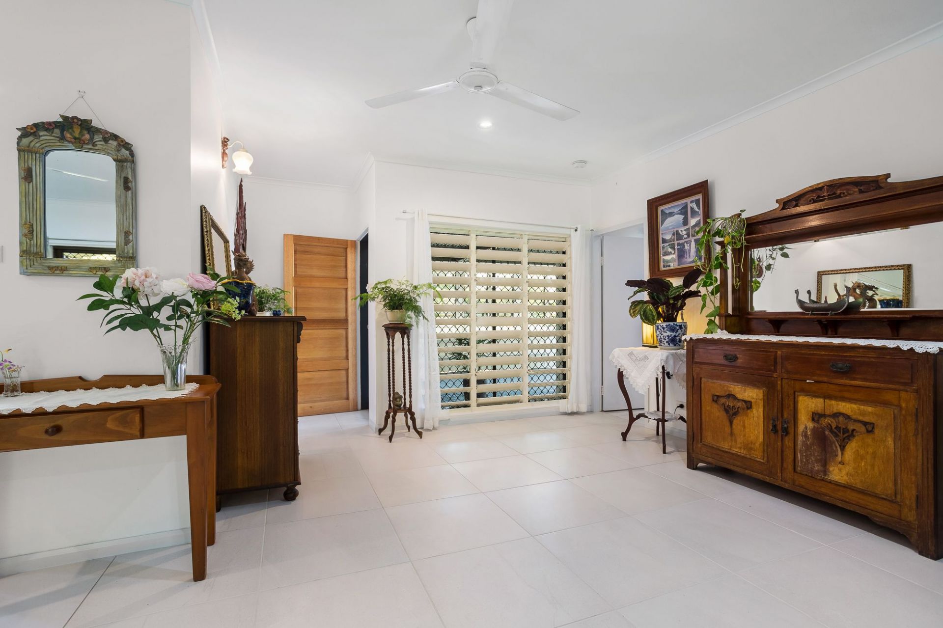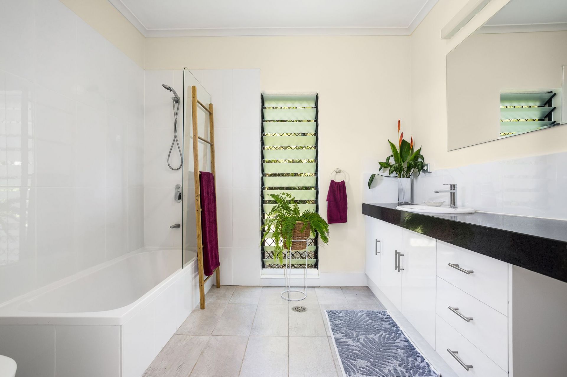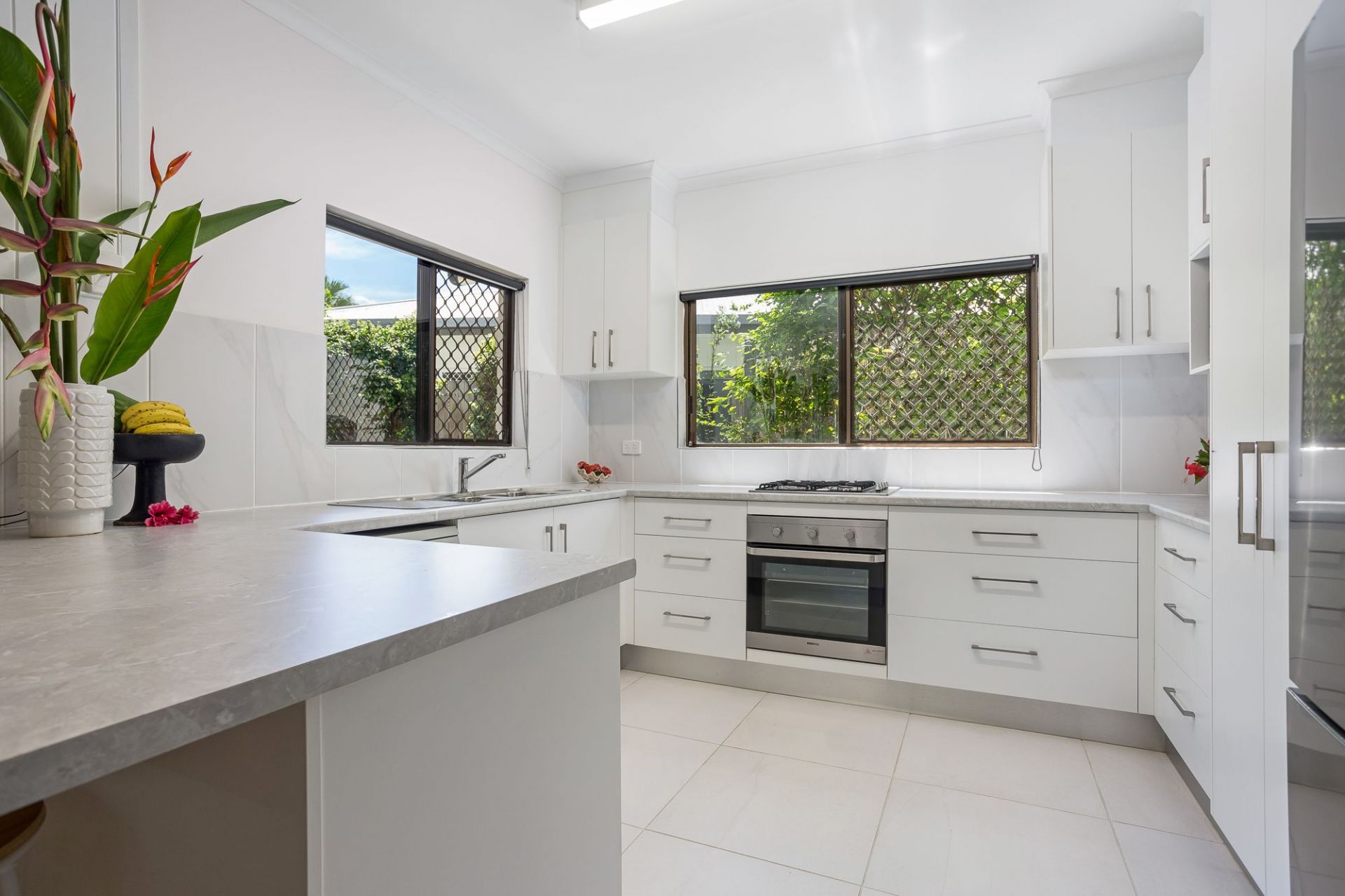 The middle section of the home consists of a large open living area with views looking out to lush tropical gardens. This provides a feeling of luxury and privacy. The open plan living area also incorporates the dining area and kitchen with an additional breakfast bar. With a recently renovated kitchen, the new owner can just walk in, to a newly installed gas stovetop and electric oven, plus, a new Bosh dishwasher.