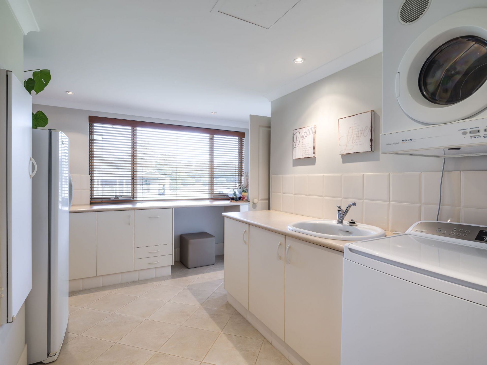 There is also a well sized office upstairs, 3 queen size bedrooms downstairs all with generous wardrobes, a bathroom, toilet plus a separate powder room off the family room, large laundry with linen cupboards and a separate storage cupboard.