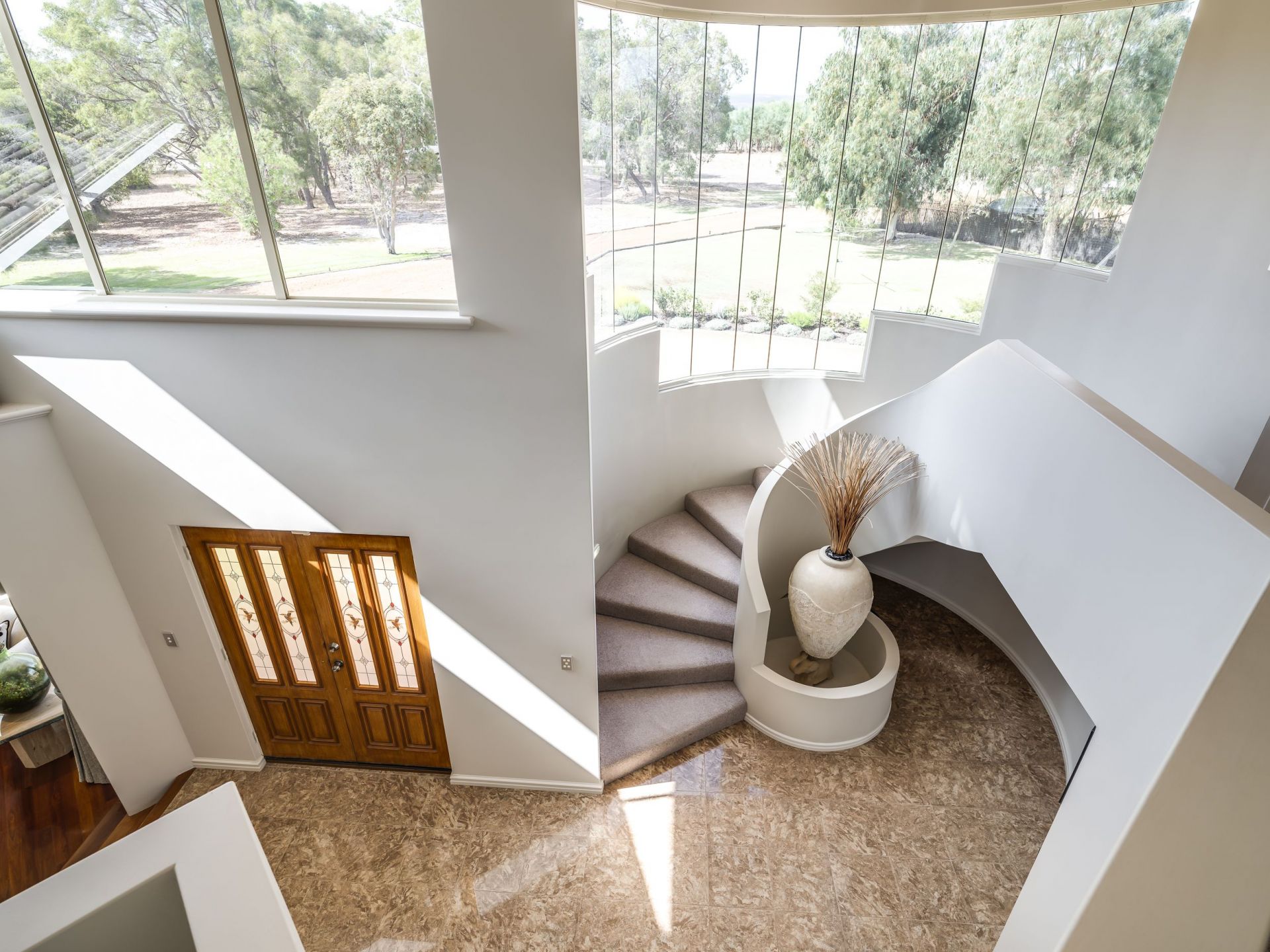 The master bedroom is upstairs and has two separate extra-large walk-in robes and a spacious open ensuite with a large corner spa and opening onto a large balcony overlooking the beautiful surroundings.