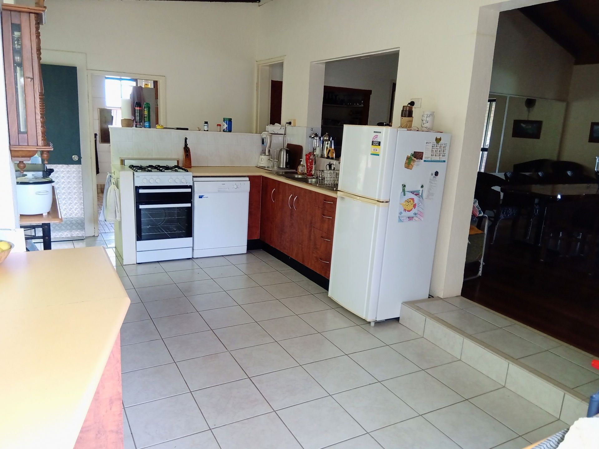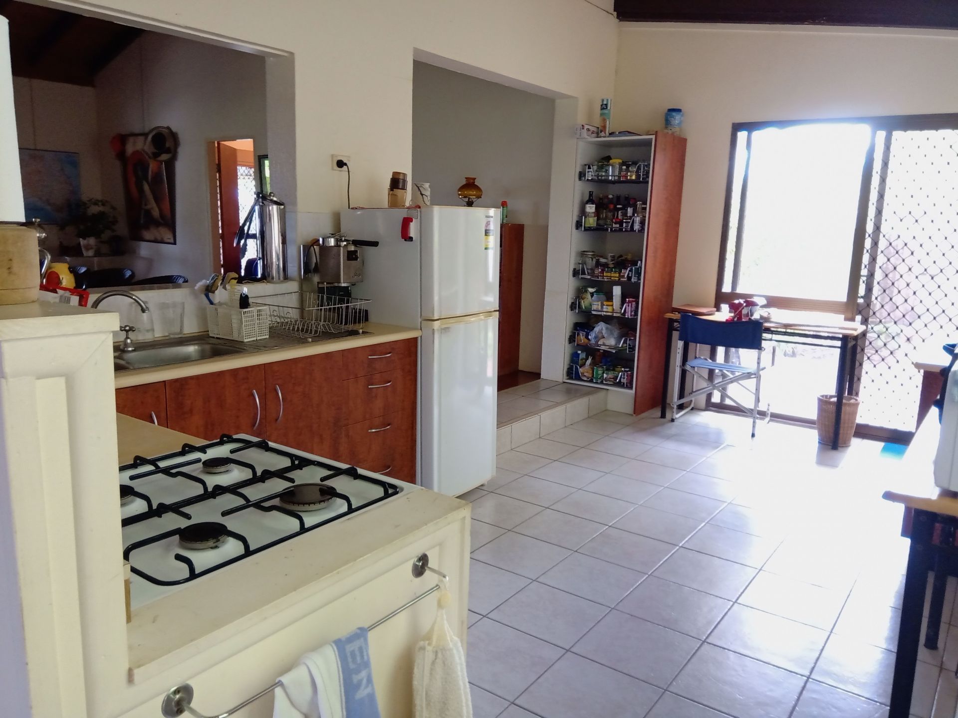 Fantastic views to be had from the living areas of this open plan home. Hidden away from view of the street, in the centre of town. Behind mango trees and Indian almond tree.