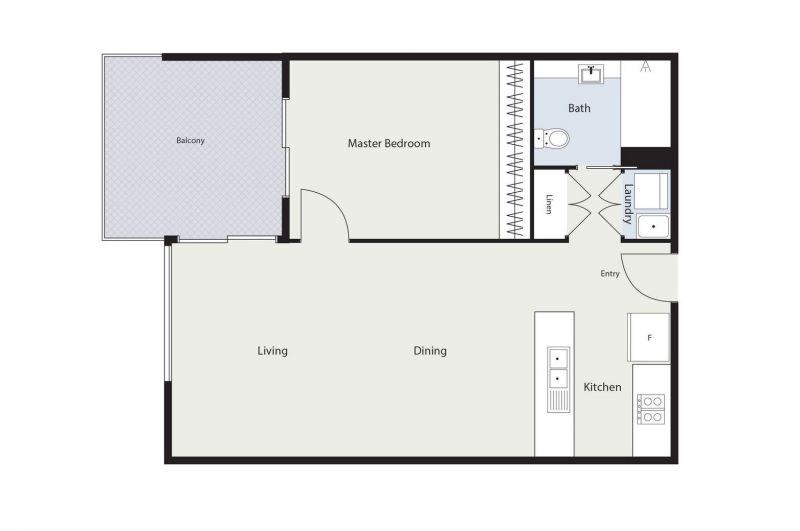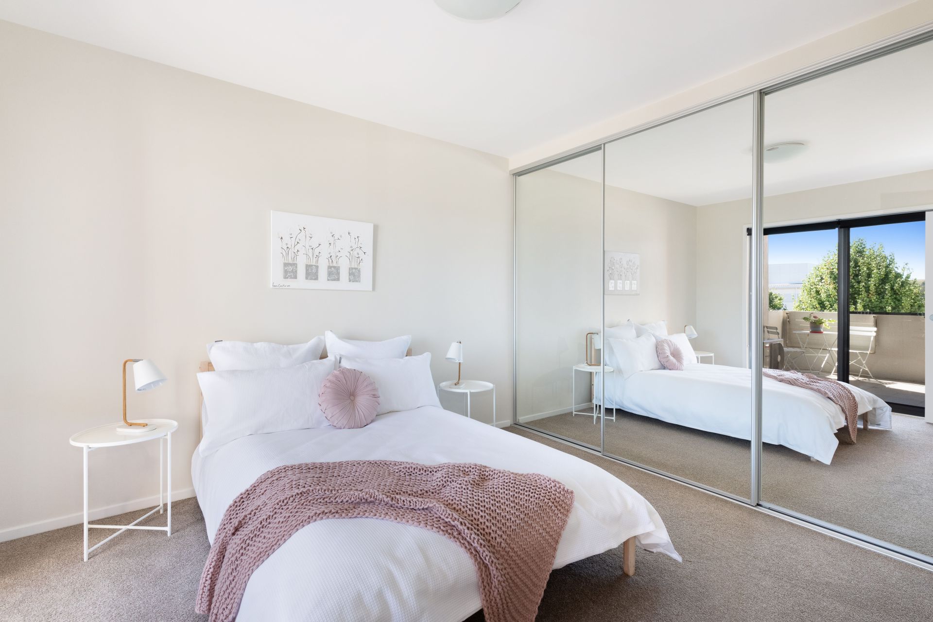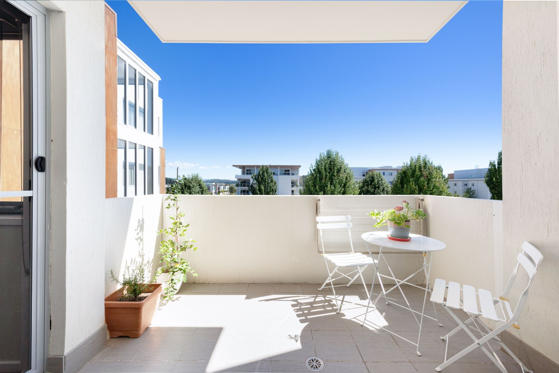 - Private balcony accessible from living room and bedroom