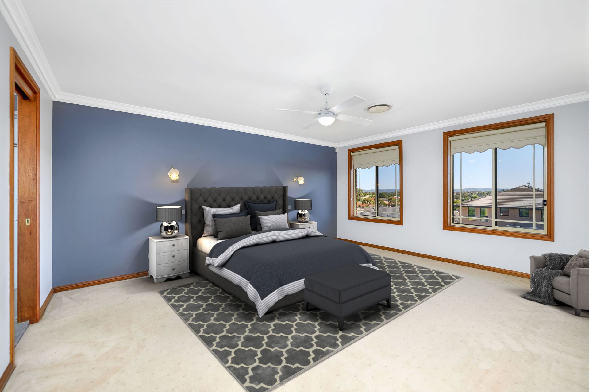 Climb the timber staircase to the bedroom's.