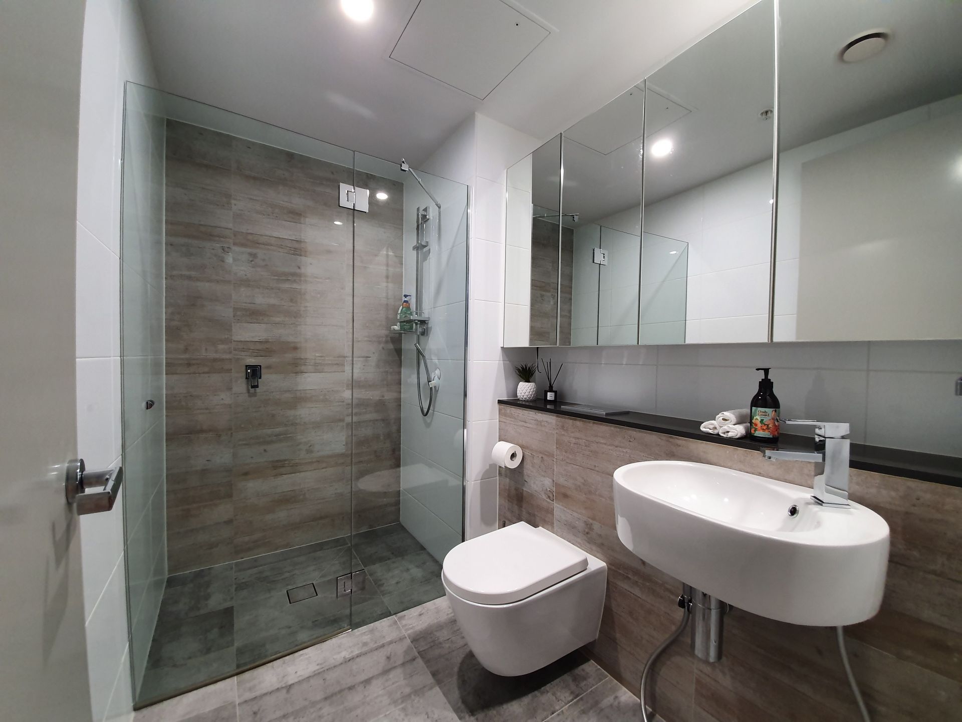 - Both bathrooms with wall-mounted toilets