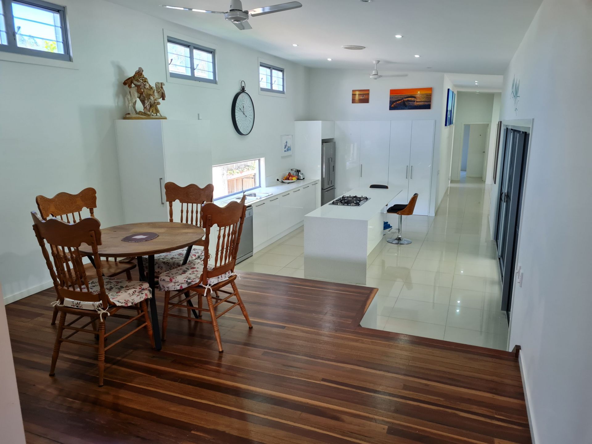 • Elevated dining room with timber floors